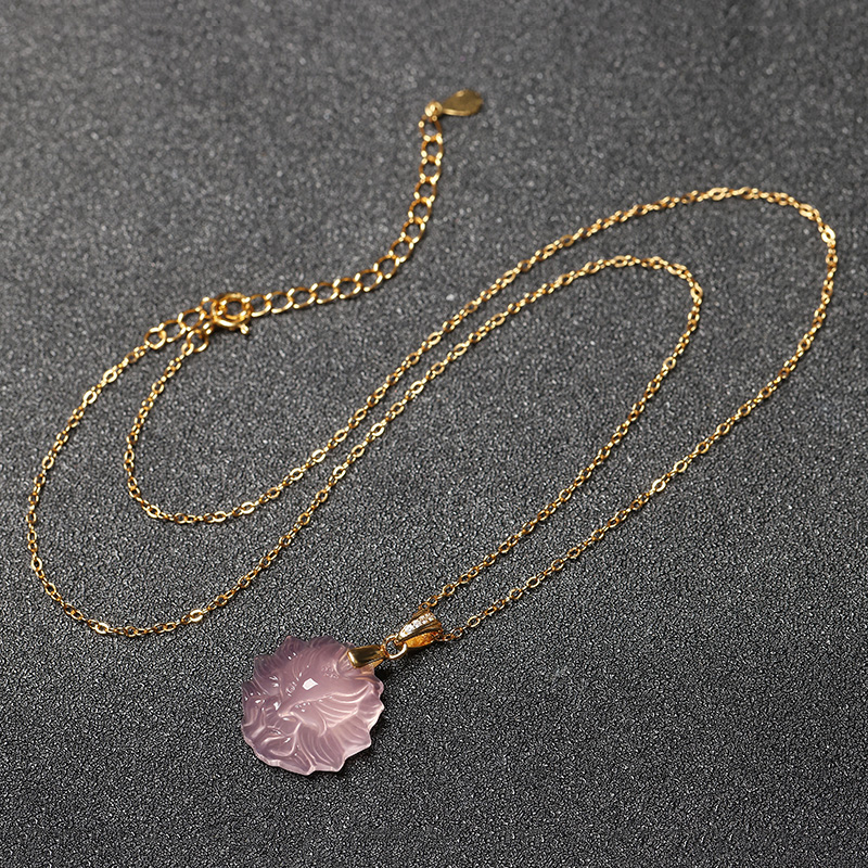 粉水晶九尾狐吊坠925银锁骨项链粉晶狐狸芙蓉石女招桃花女友礼物