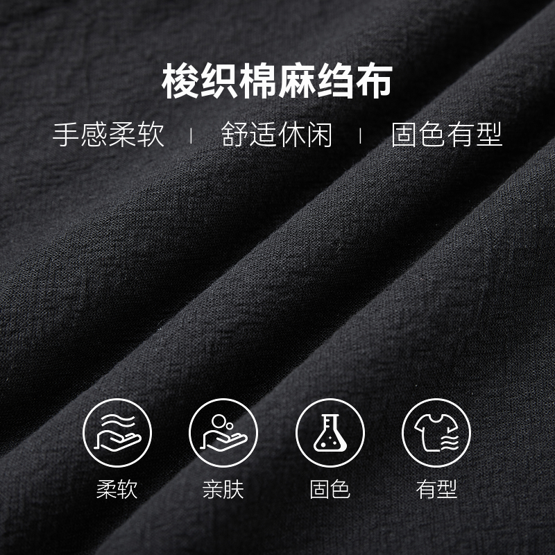 半墨大码男装立领长袖衬衫男秋季新款棉麻刺绣衬衣宽松胖子外套潮