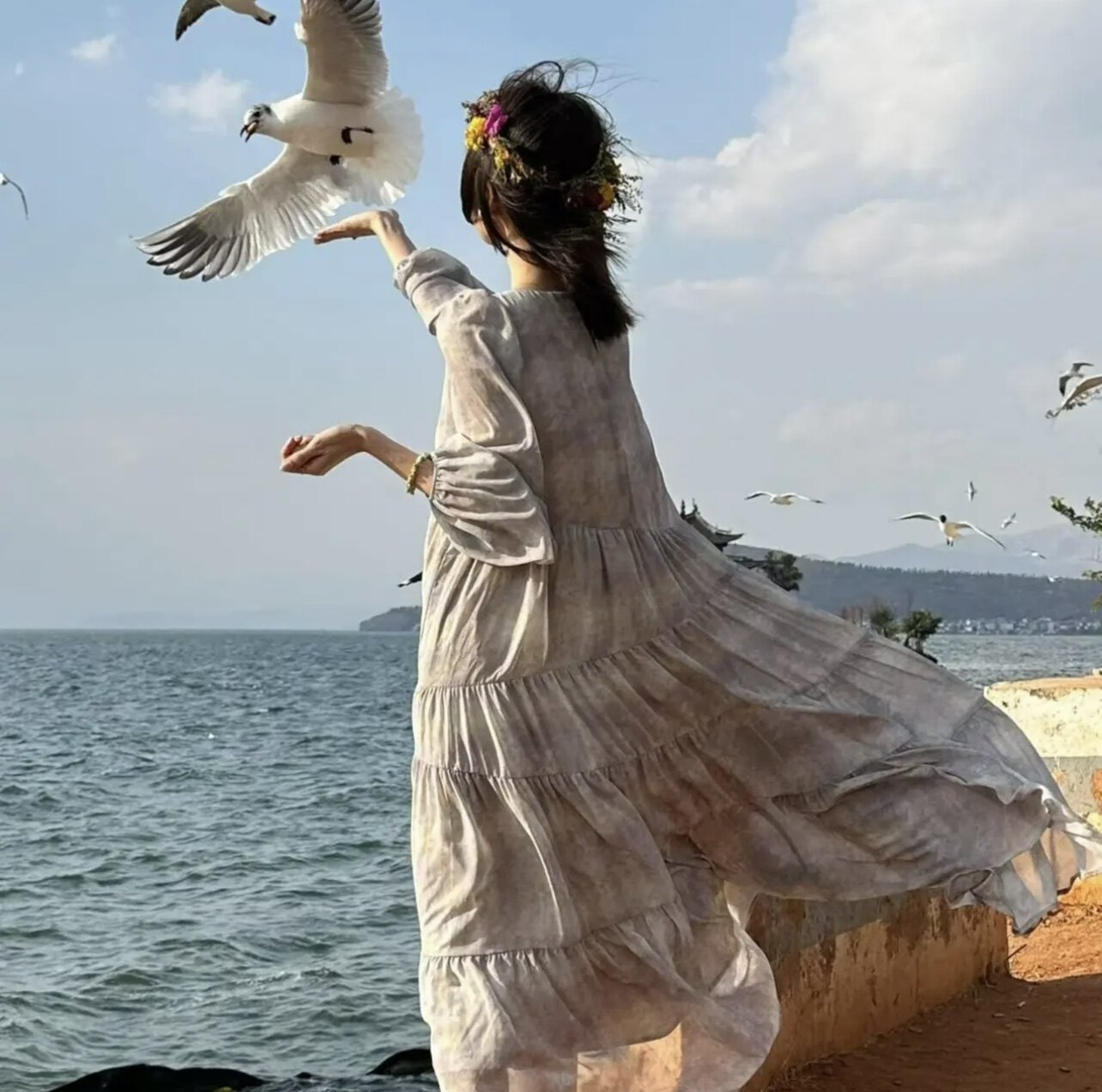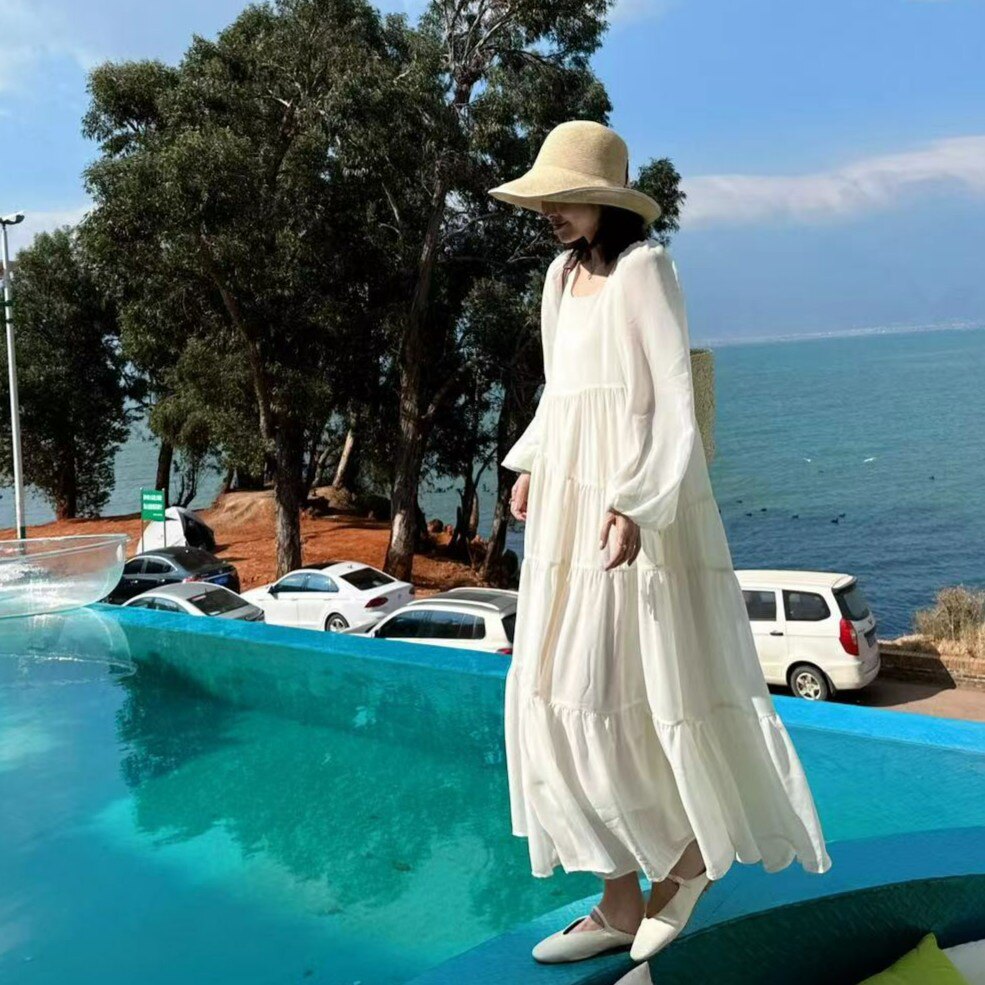 仙女裙宽大版型花色纯色法式浪漫