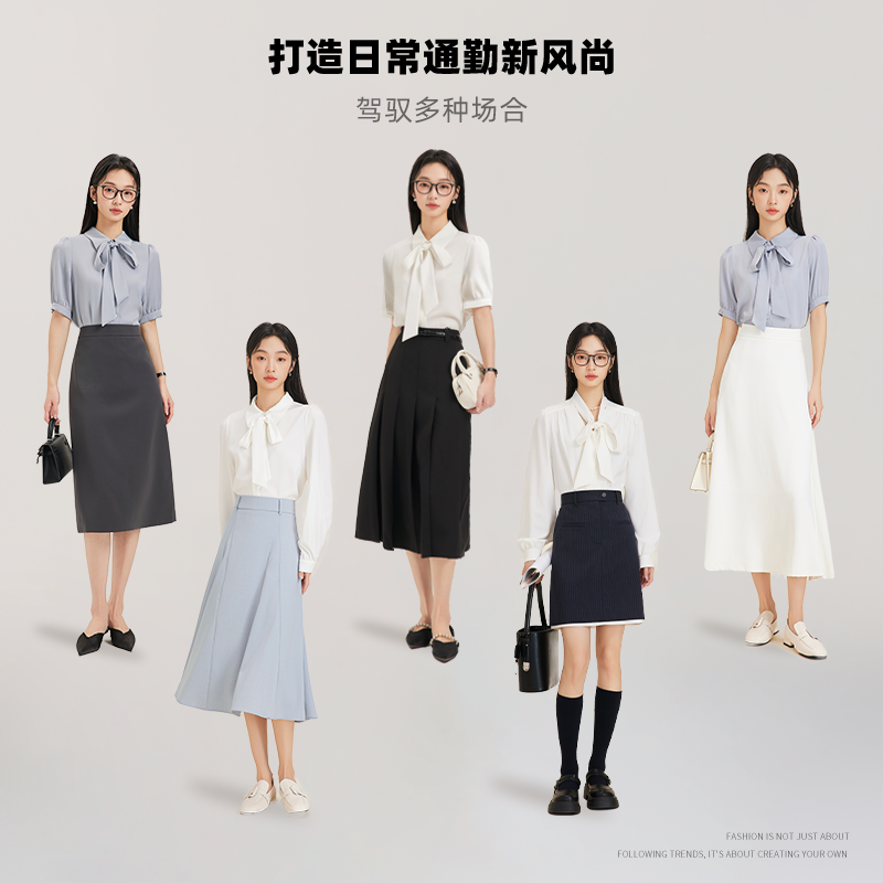 movk白色通勤正装长袖轻职场飘带衬衫女职业面试衬衣套装上衣女装
