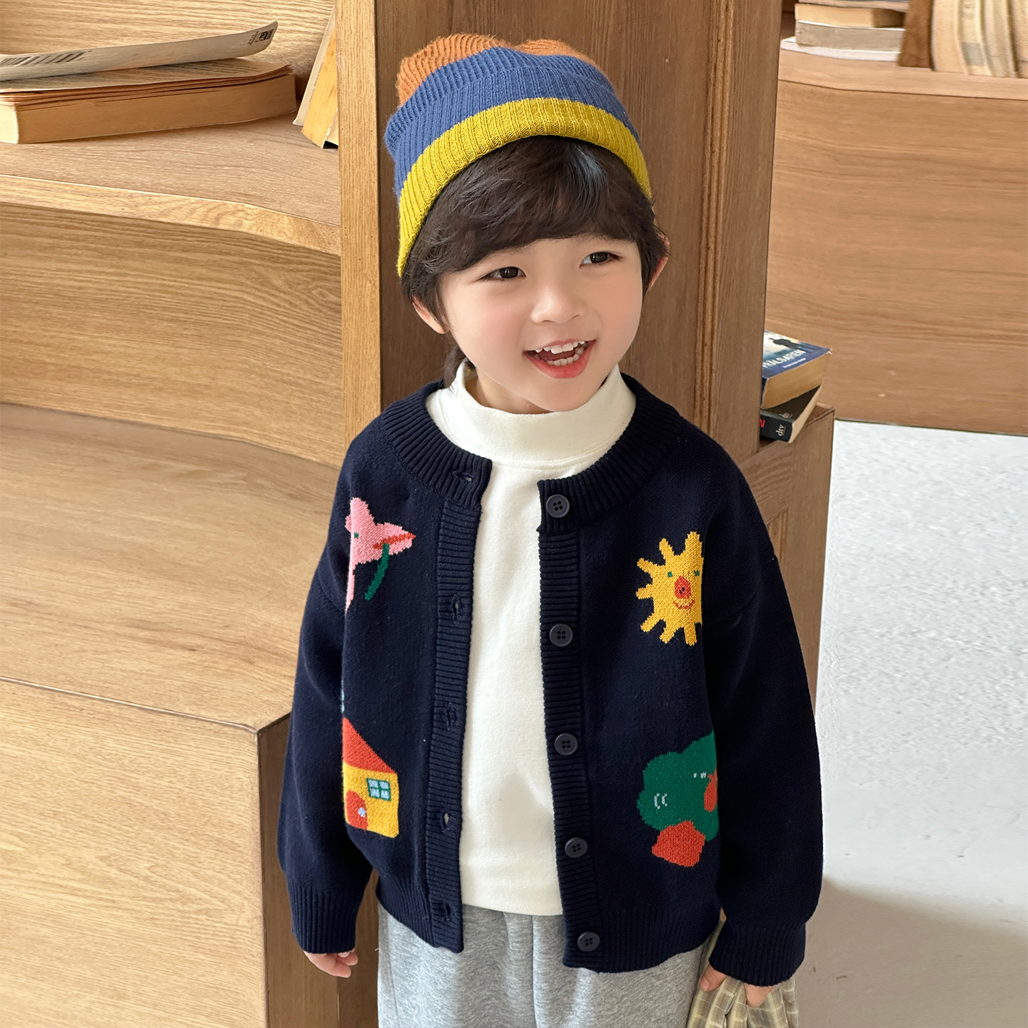 婧麒儿童针织毛衣2025年新款男童春装纯棉儿童宝宝毛衣服针织开衫