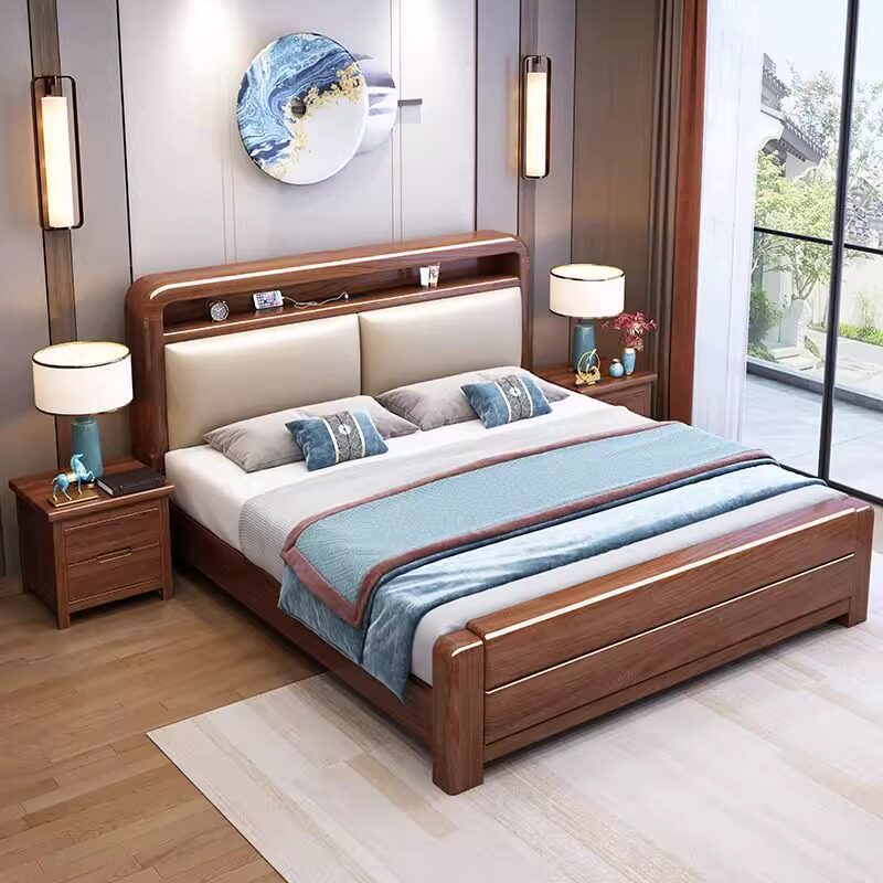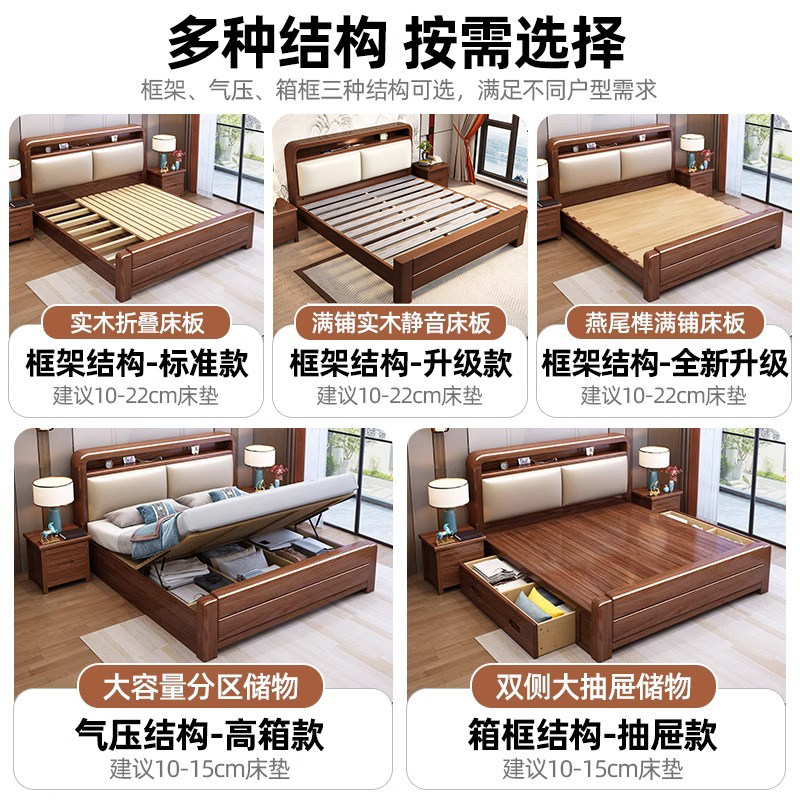 源氏木语中式全实木床家用1米8双人大床卧室真皮软包胡桃木抽屉高