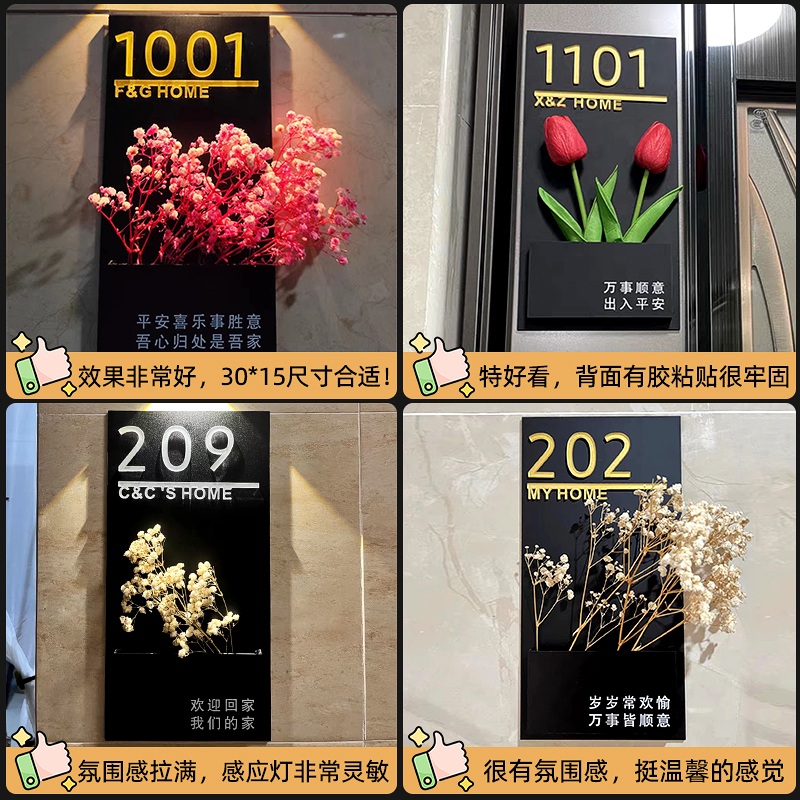 2025年新款门牌号门牌定制门牌号门牌号码牌家用入户门装饰轻奢创意门口门牌号订制发光户外房间门牌灯包厢