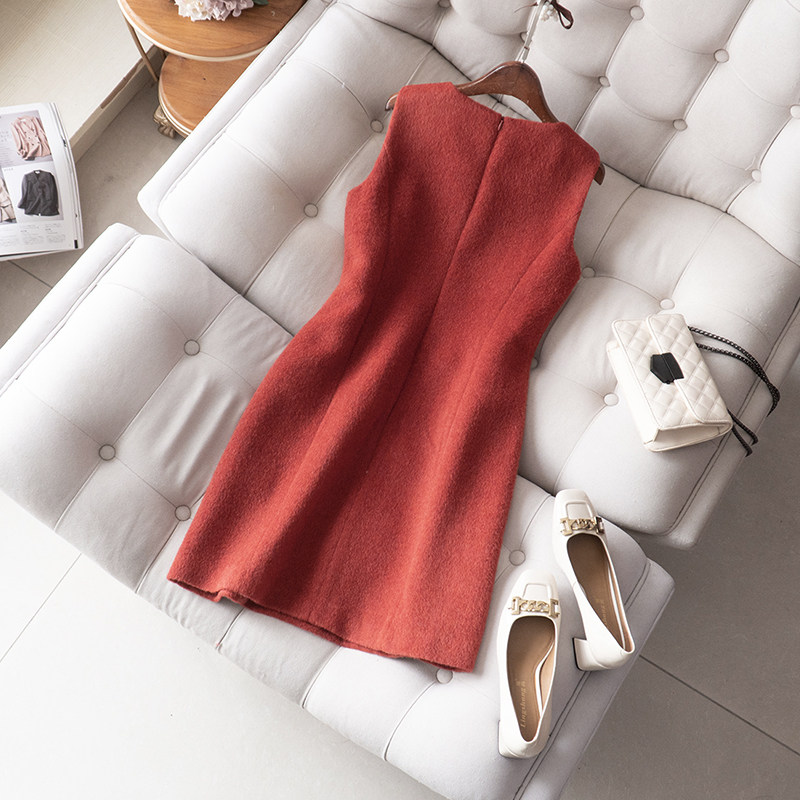 自带贵气!高质感羊驼毛+羊毛背心裙春冬新品圆领通勤无袖连衣裙