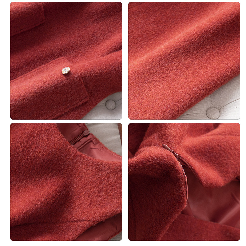 喜庆羊驼毛+羊毛纯色新年连衣裙