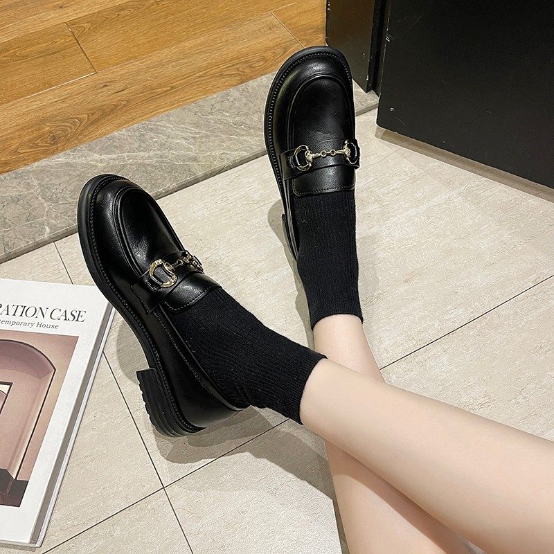 英伦风小皮鞋女2025秋季新款时尚软底防滑复古平底软皮一脚蹬单鞋