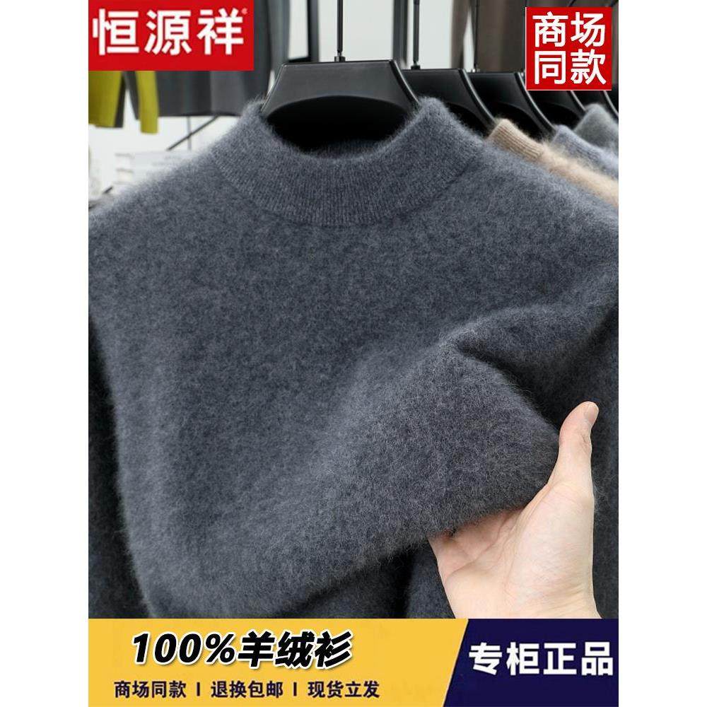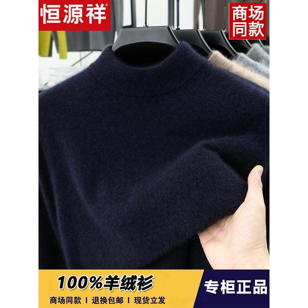 恒源祥100%纯羊绒衫男士加厚半高领保暖毛衣冬季爸爸装打底羊毛衫