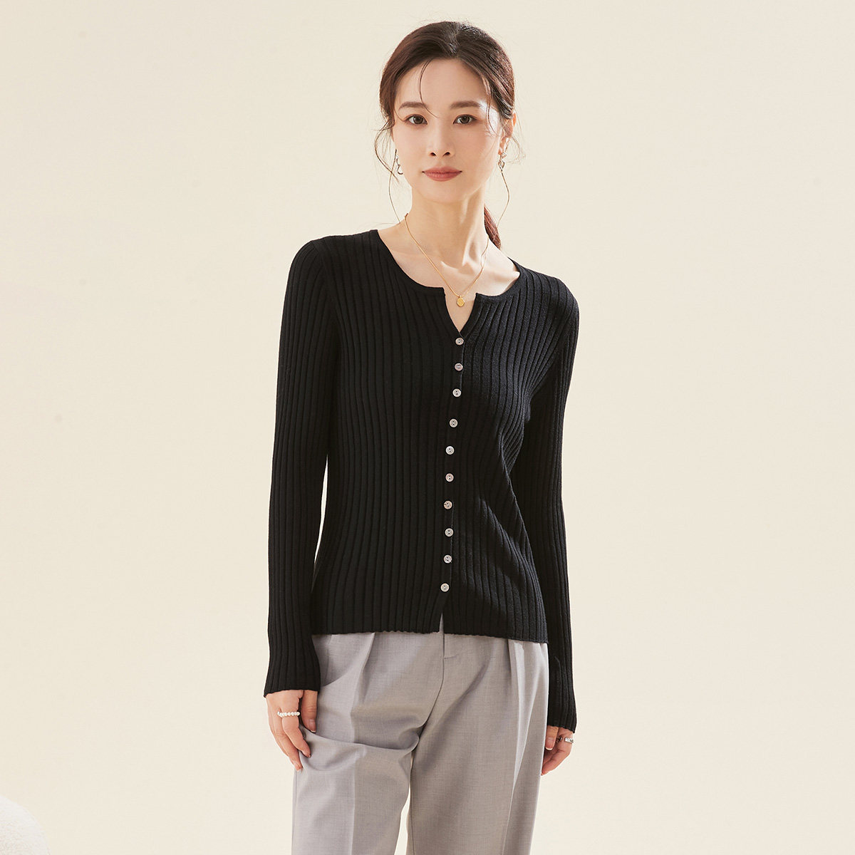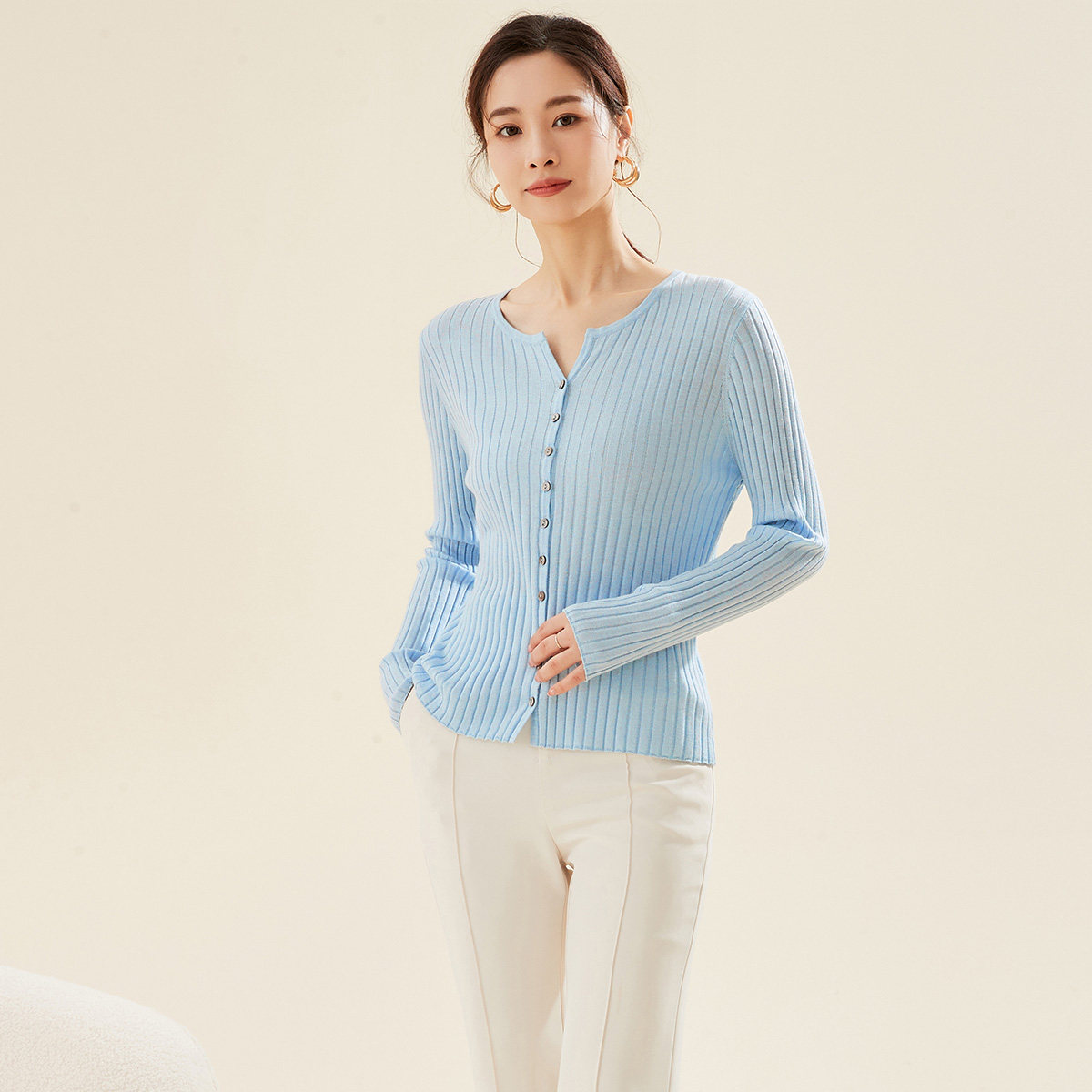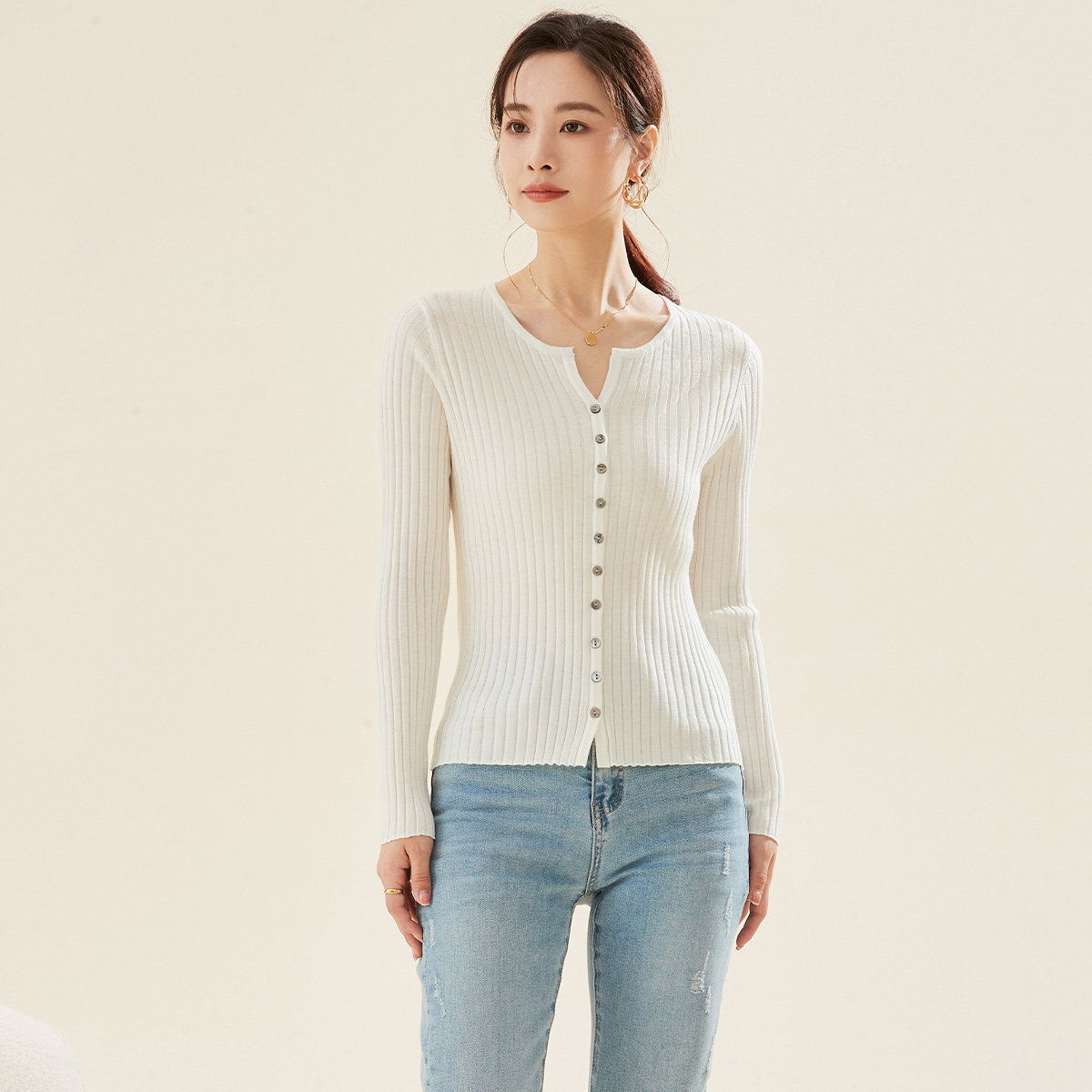 春竹正品春季新款桑蚕丝混纺休闲洋气气质纯色百搭显瘦女针织开衫