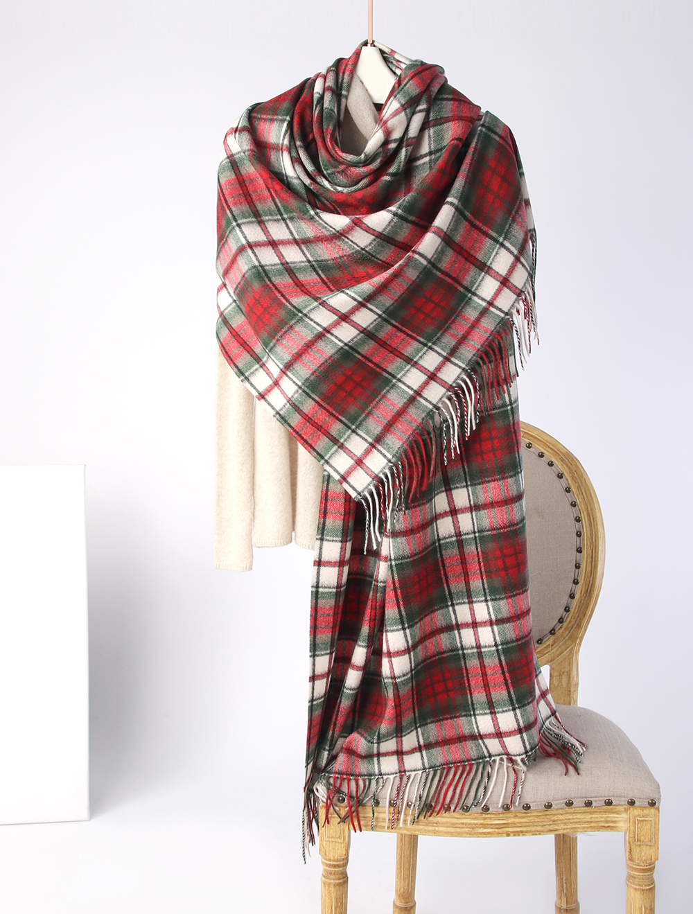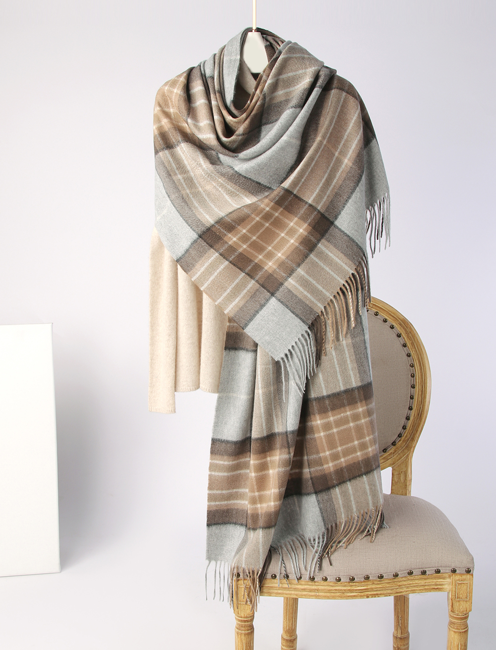 秋冬时尚重磅保暖加大加厚英伦格子100纯山羊绒围巾披肩两用