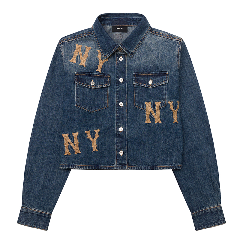 MLB女款牛仔外套25新款NY刺绣翻领休闲运动夹克短款衬衫3FDRG0254