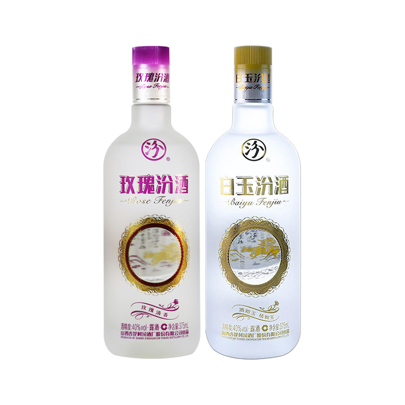 汾酒40度玫瑰汾酒白玉汾酒各一瓶375ml两瓶装山西特产杏花村露酒