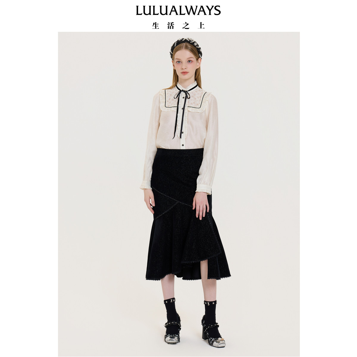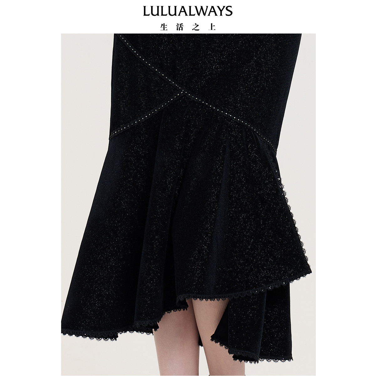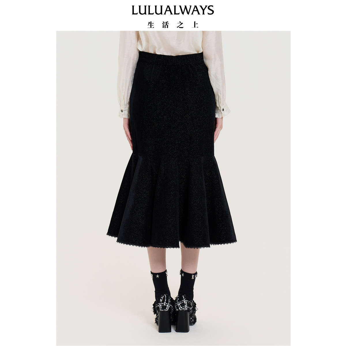 LULUALWAYS我爱露露25冬季新款优雅时尚设计感高腰鱼尾长款半身裙