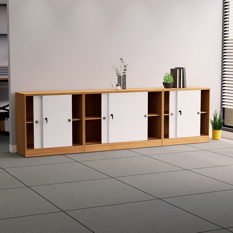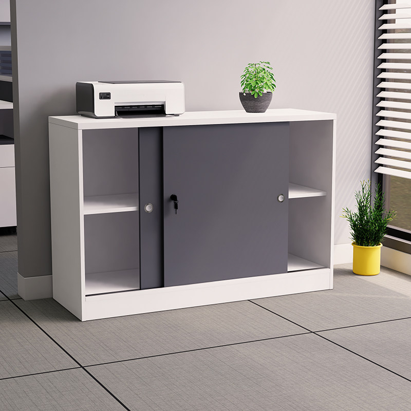 办公室推拉移门文件柜矮柜木质资料柜打印机柜落地储物隔断桌边柜