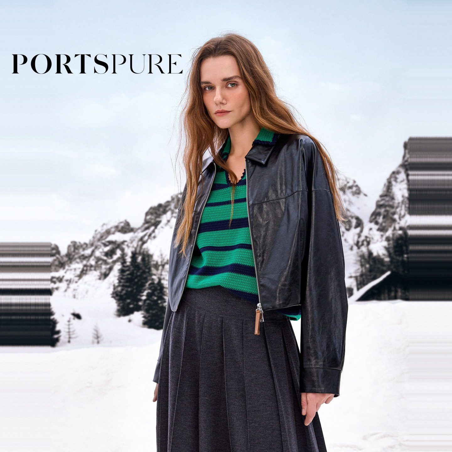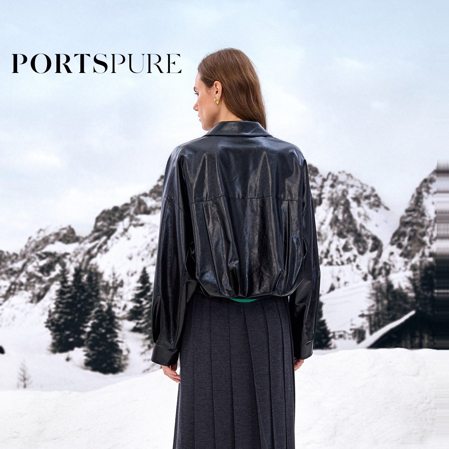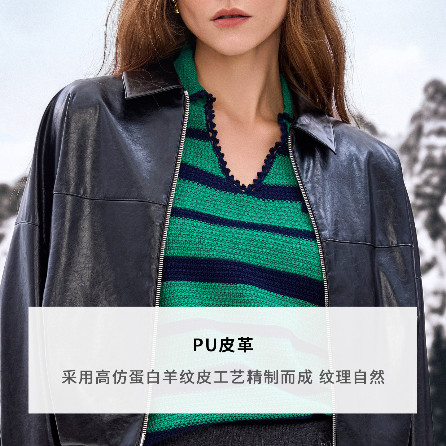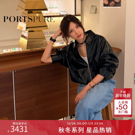 商场同款 宝姿PORTSPURE女装2025秋冬新品摩登酷飒时髦皮质短外套