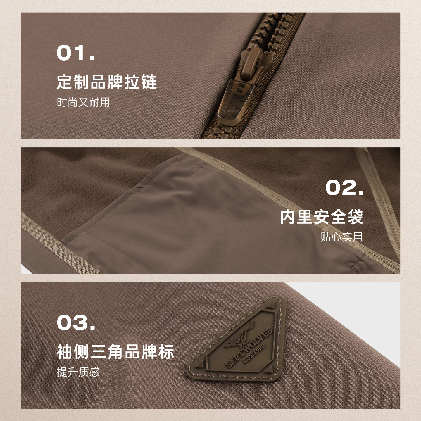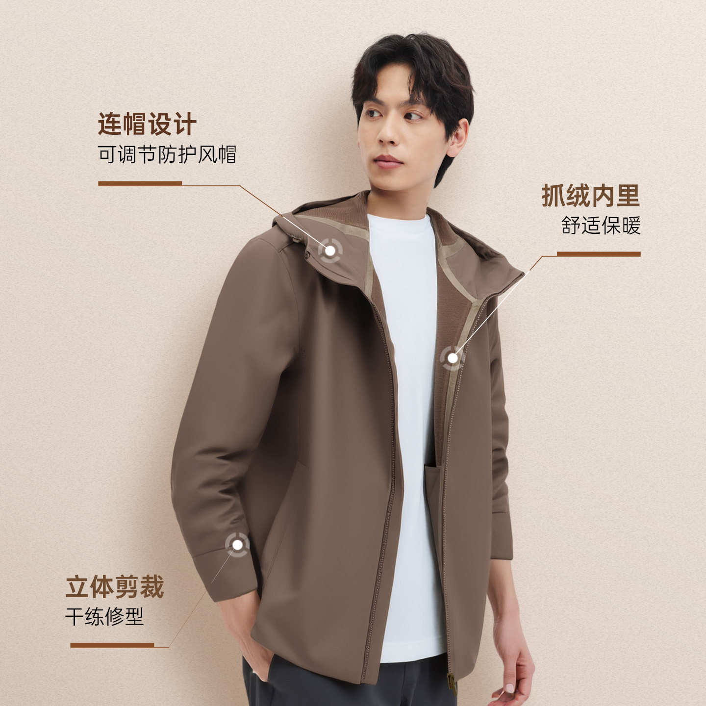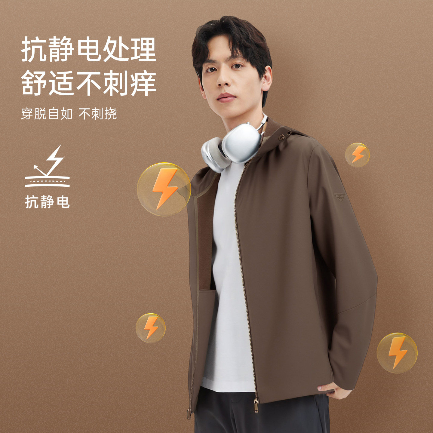 【三防抗静电】七匹狼夹克男2025秋季新款连帽薄绒轻量户外风外套