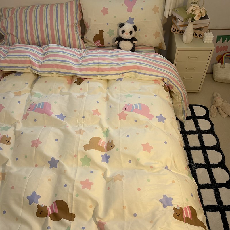小趴熊卡通四件套全棉少女心可爱被套床单宿舍三件套床上用品