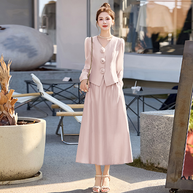 法式连衣裙穿搭一整套女2025新款春秋高级感气质洋气半身裙两件套