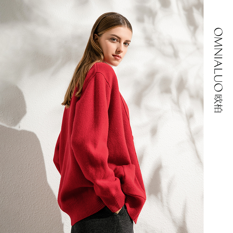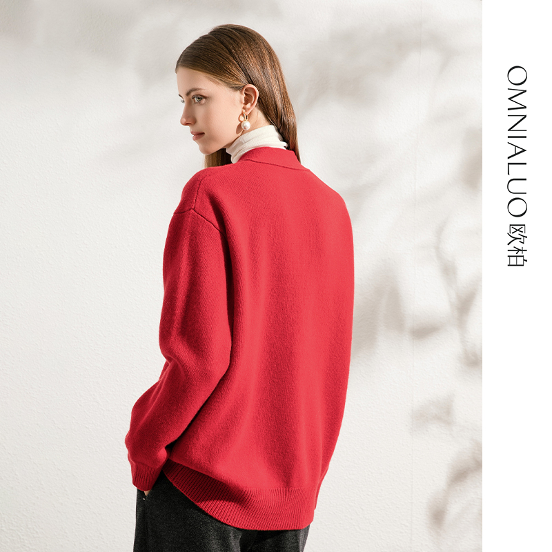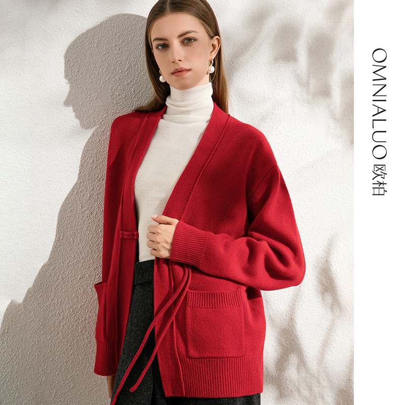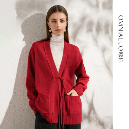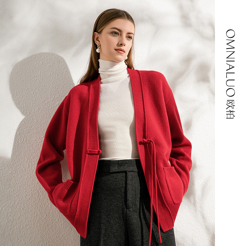 【设计总监然姐】欧柏兰奴开衫女2025年春季时尚纯色宽松盘扣毛衫