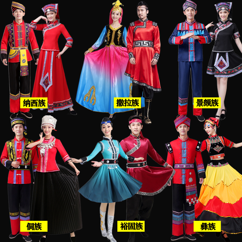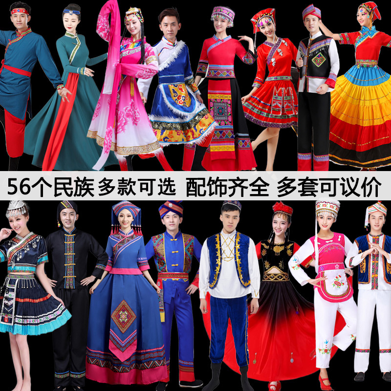 56个少数民族服装成人男女款壮族蒙古苗彝黎佤族新疆演出舞蹈服饰