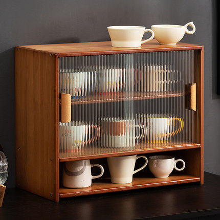 收纳柜子置物柜家用防尘杯架子零食长虹玻璃抽屉式桌面多层整理架