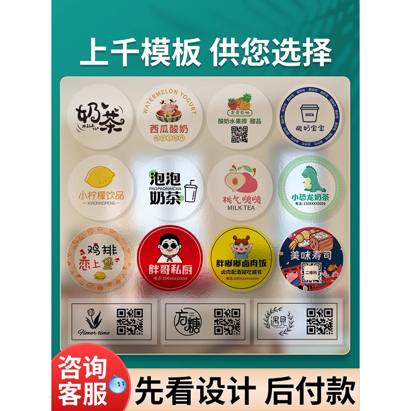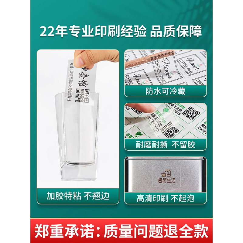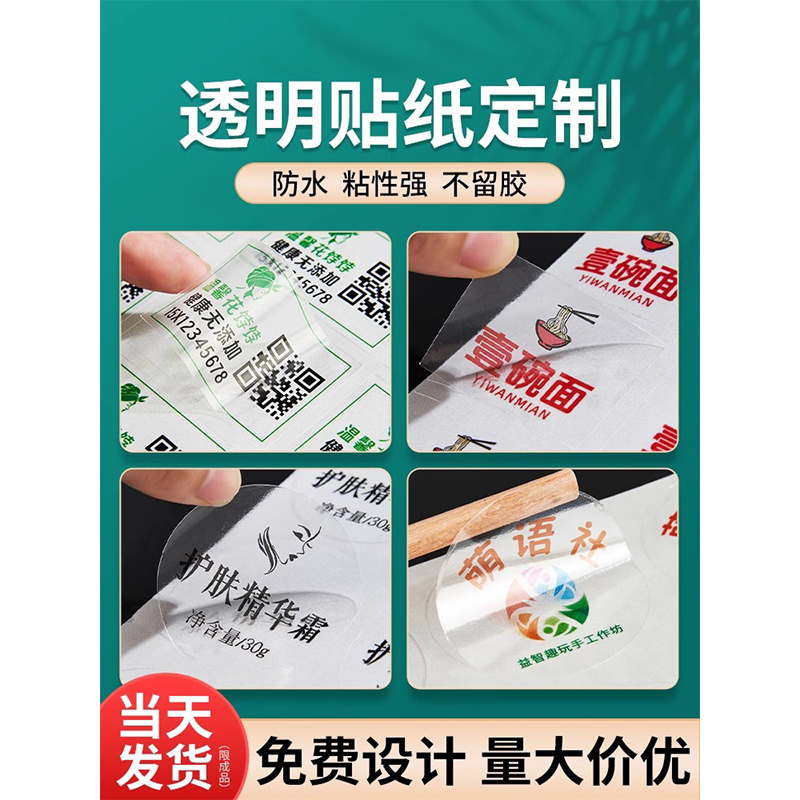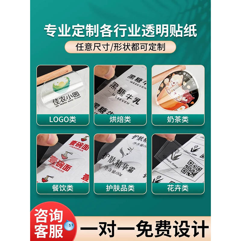 透明贴纸定制不干胶logo标签定做防水烫金PVC奶茶杯烘焙水果广告自粘贴公司商标封口贴二维码不粘胶打印印刷