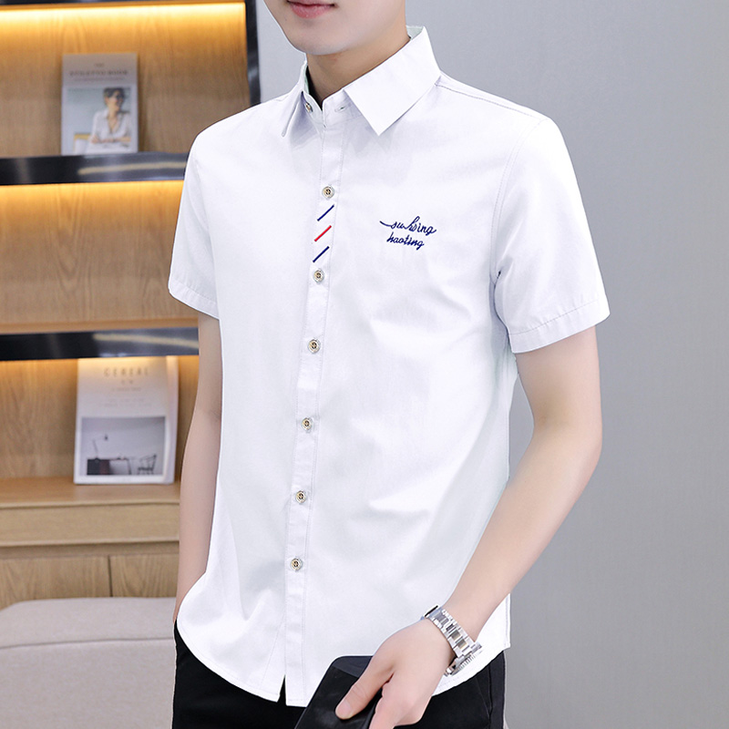 以纯冰丝衬衫男短袖寸衫夏季潮流百搭休闲衬衣修身白色百搭上衣