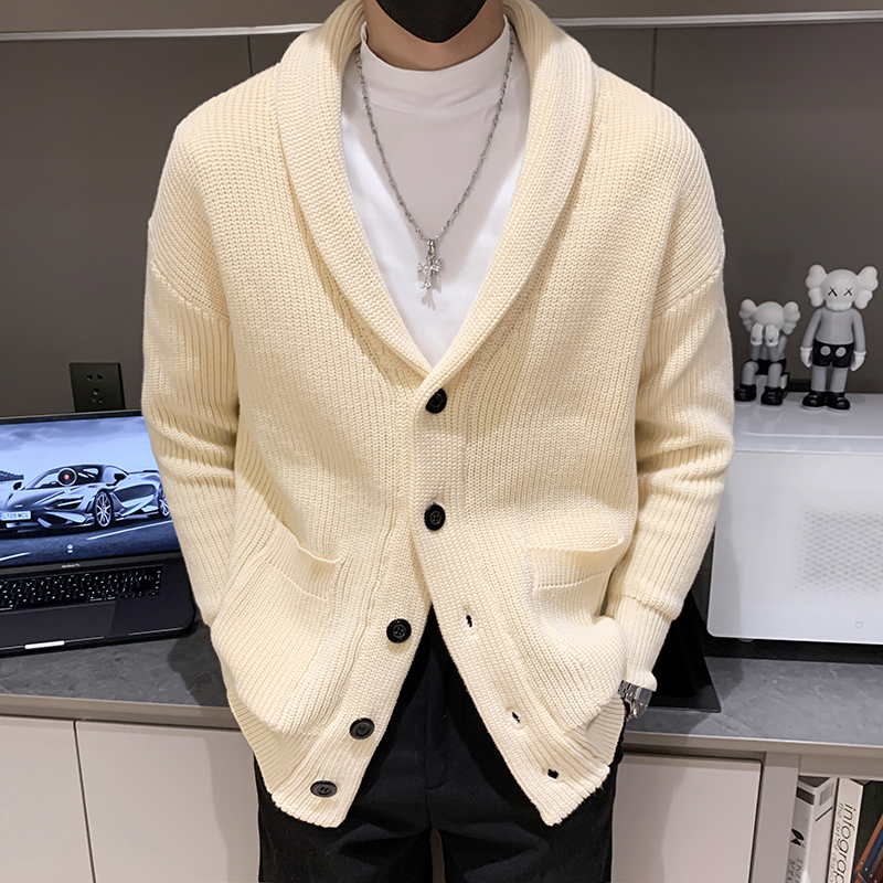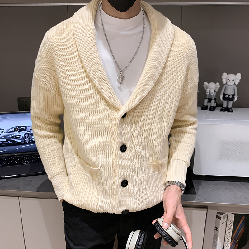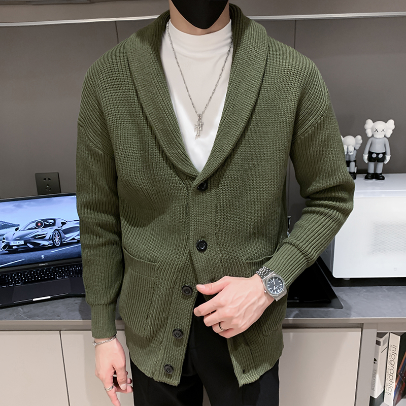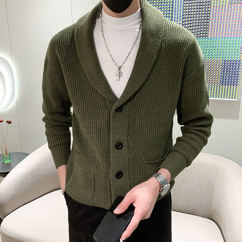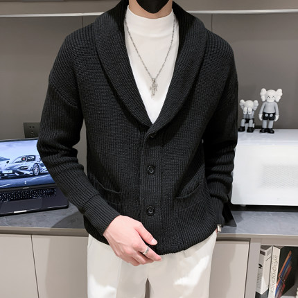秋冬新款纯色开衫毛衣男装英伦复古修身轻熟商务针织衫保暖毛线衣