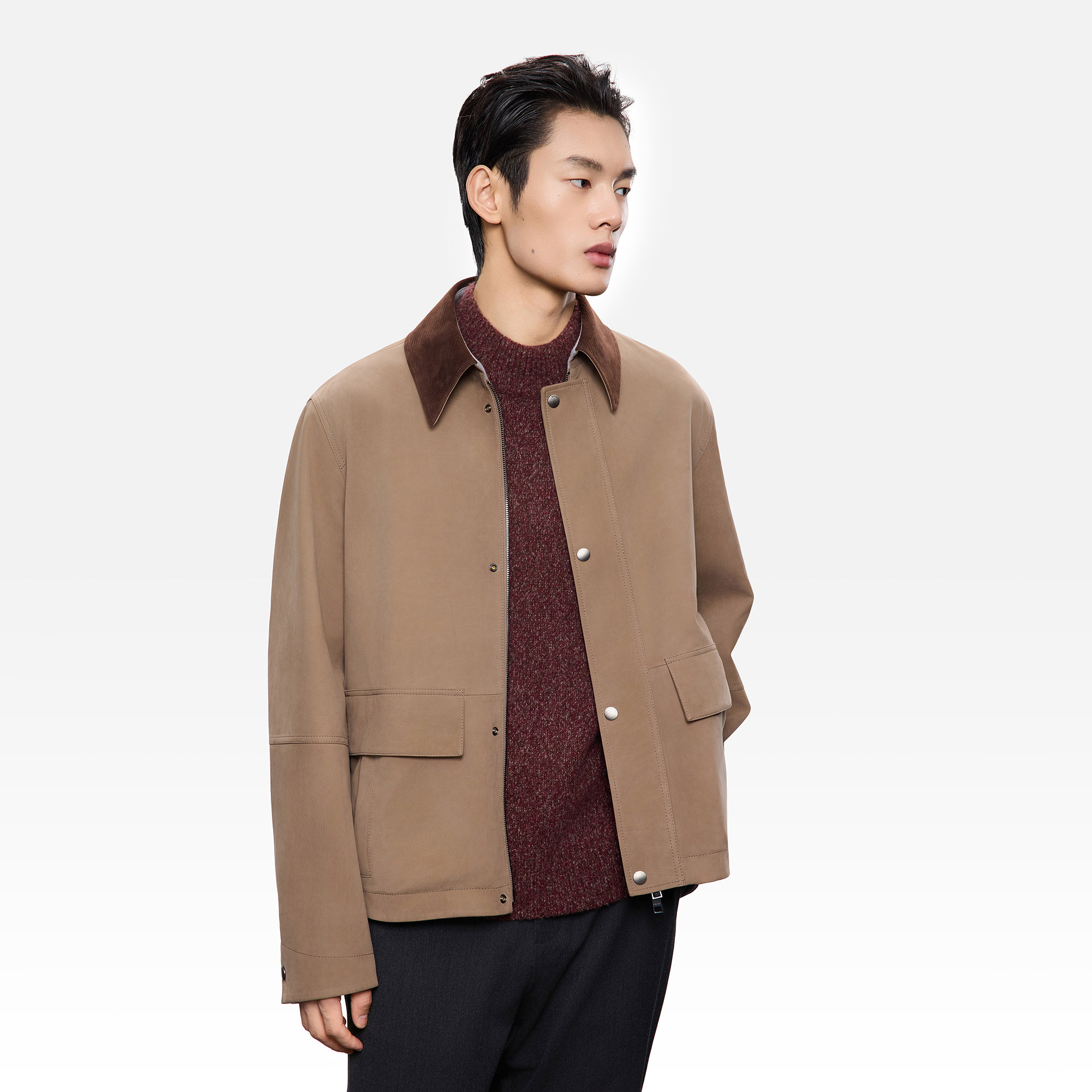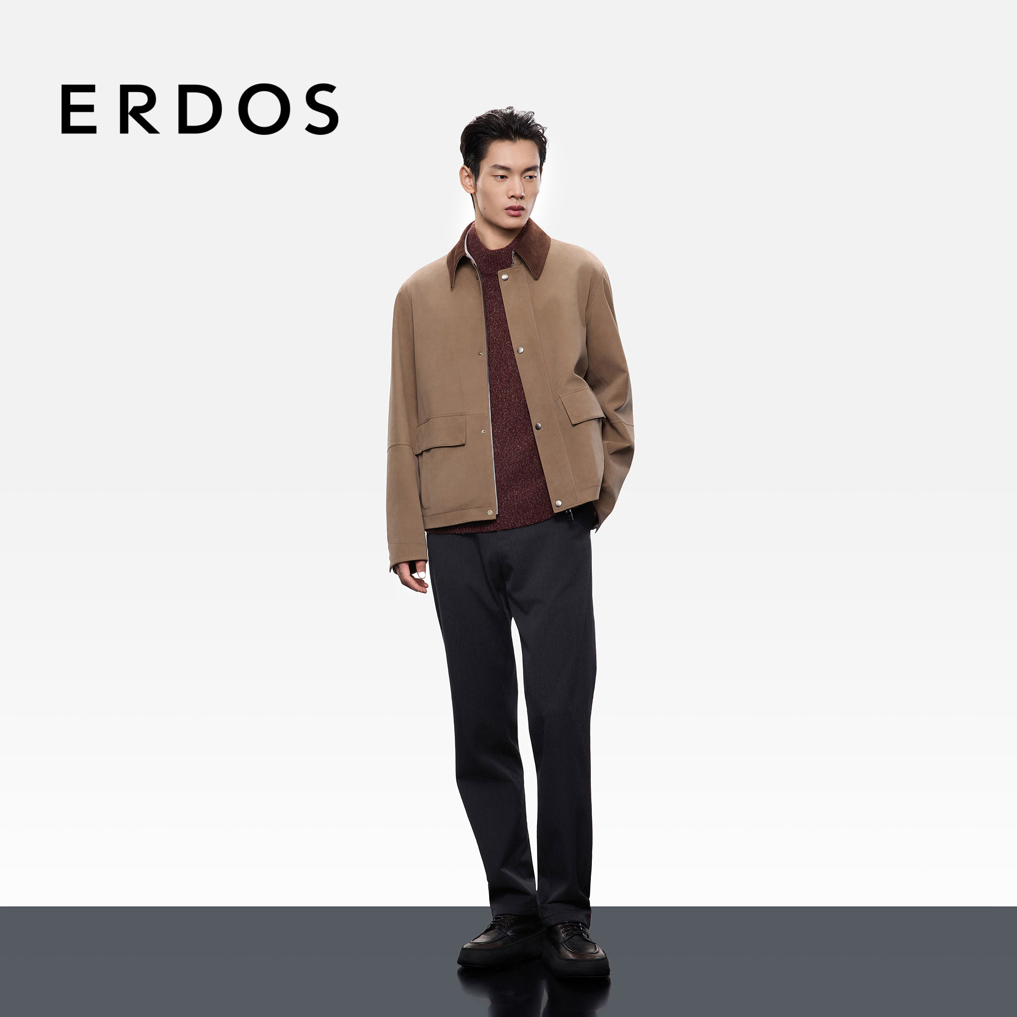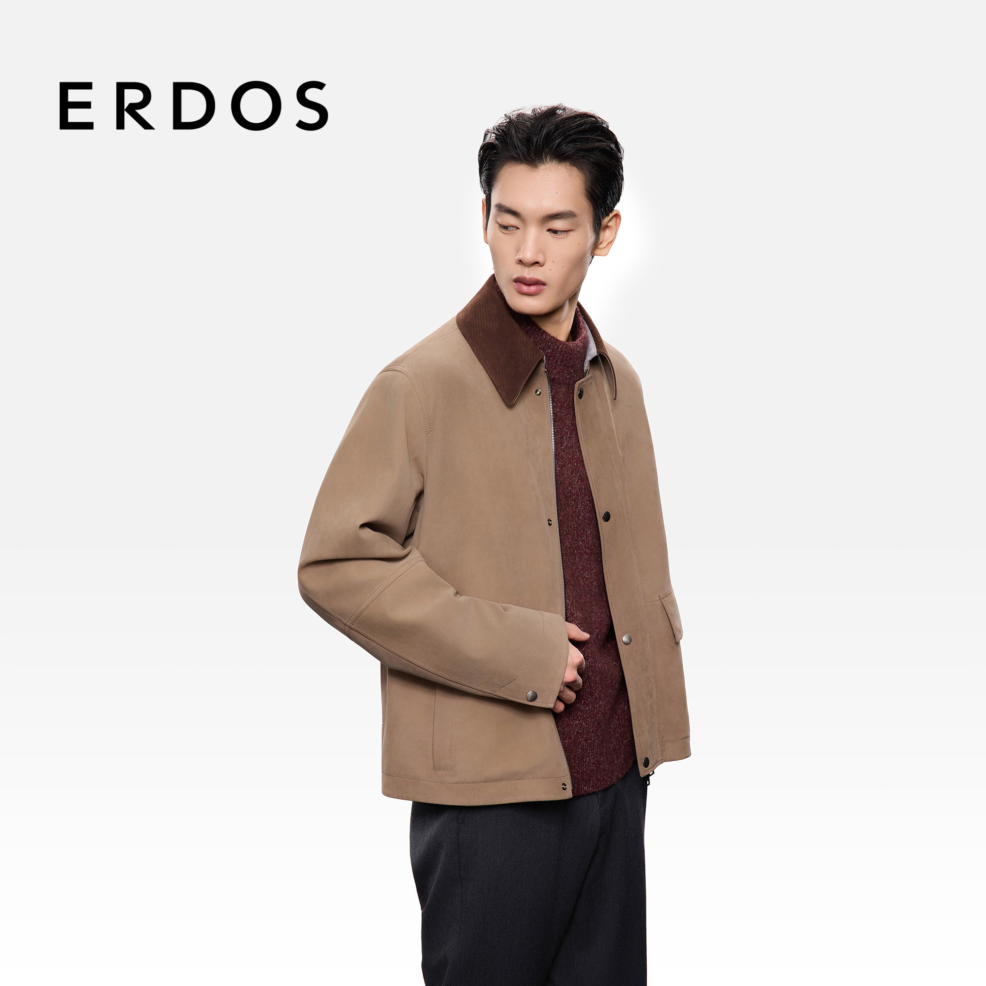 【秀场同款】ERDOS 男装英式猎装牛皮夹克25秋冬新品撞色翻领外套
