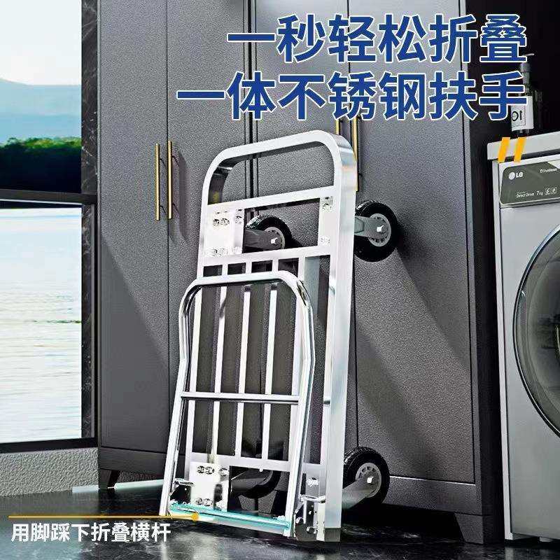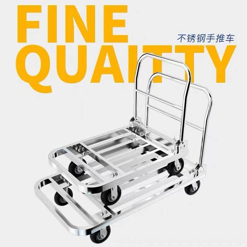 加厚型不锈钢方管车搬运车便携手拉车装修拉货小推车可折叠小拖车