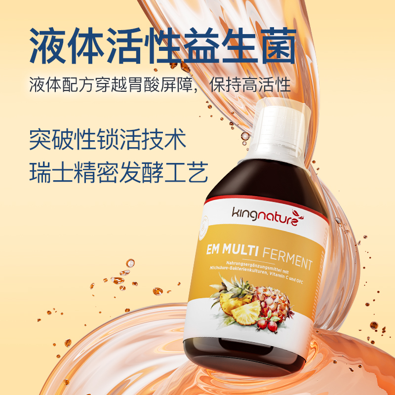 瑞士kingnature31种菌群5000亿益生菌调理肠胃活性益生菌液消化酶