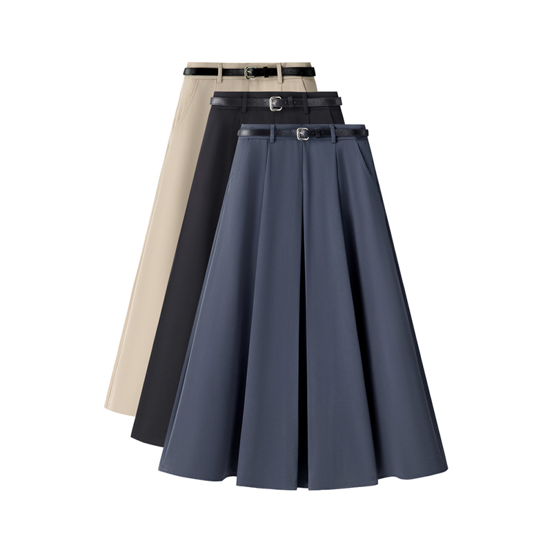 啄木鸟蓝灰色西装半身裙女春秋中长款高腰垂感半裙百褶a字伞裙