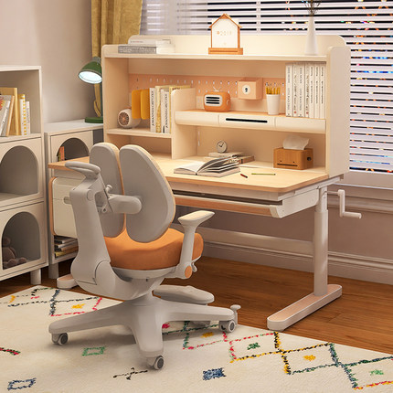 爱果乐儿童学习桌小学生书桌升降桌子实木写字桌家用课桌椅咖啡猫