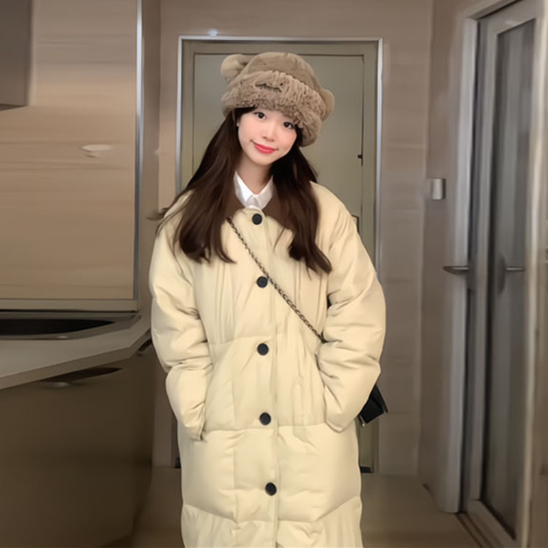 韩国高级感翻领羽绒棉服女中长款2025冬季新款小众炸街保暖外套潮