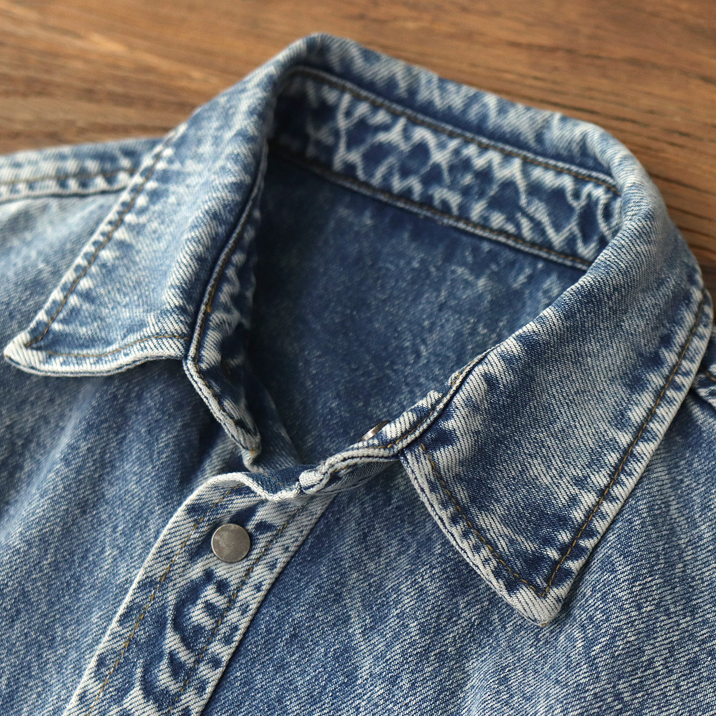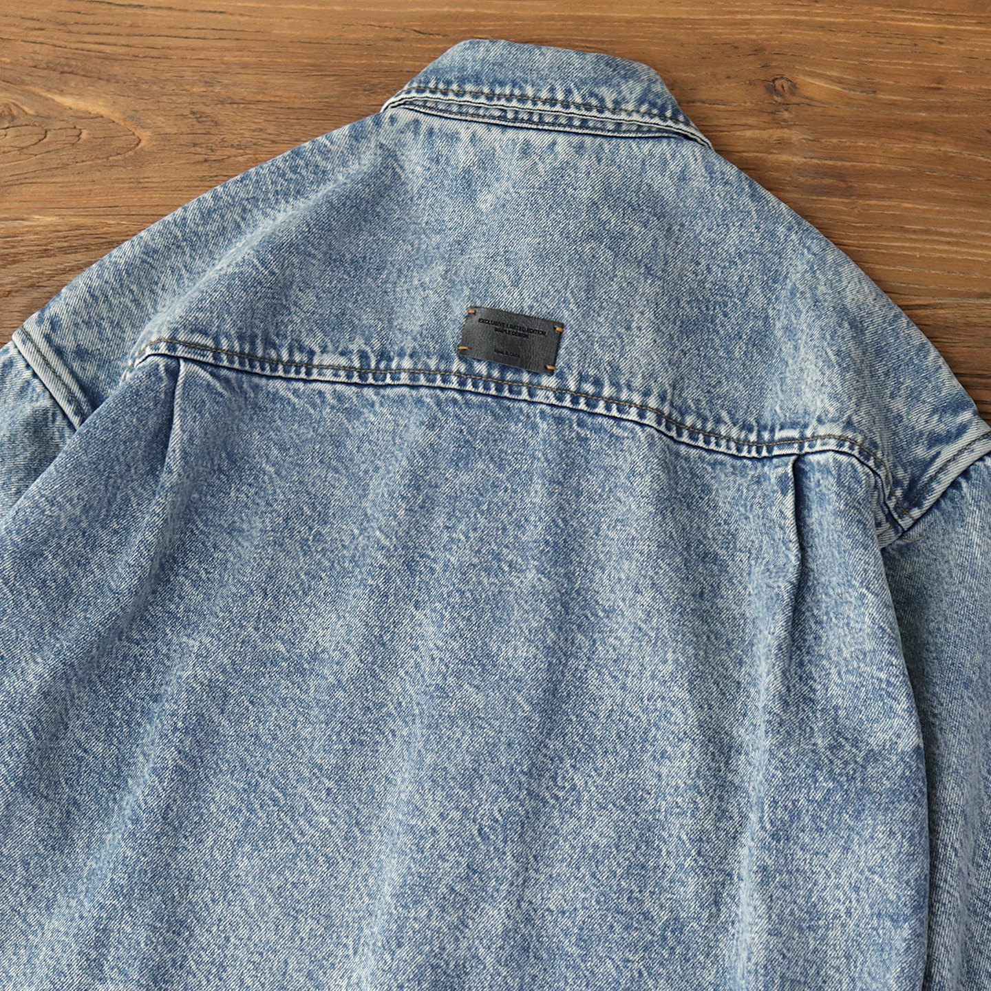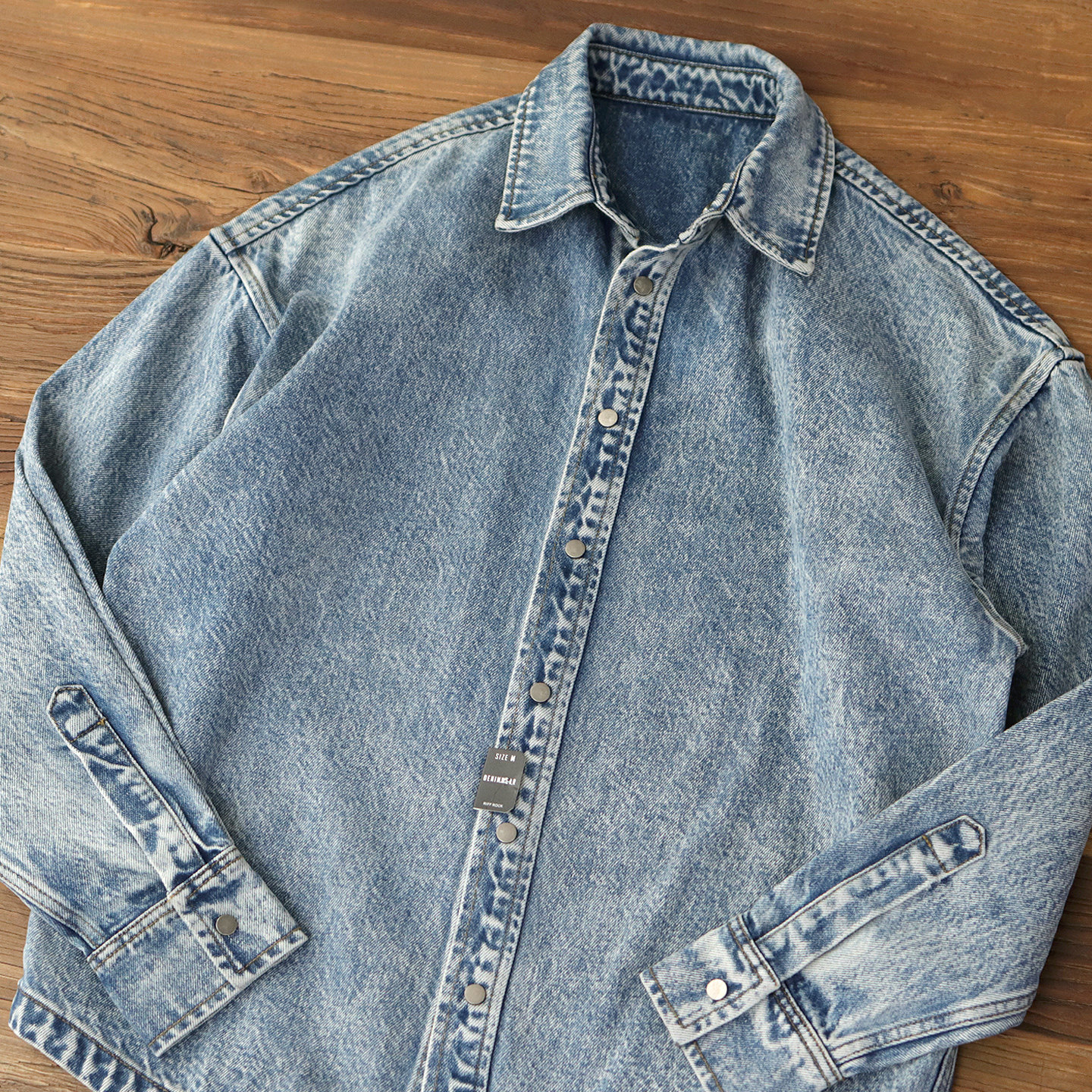 重磅加厚美式复古做旧水洗纯棉宽松廓形休闲长袖牛仔衬衫外套男