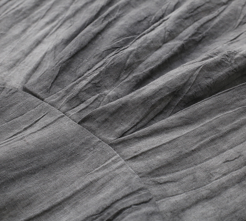 度假设计师风格连衣裙复古怀旧亚麻中长裙禅意褶皱系带显瘦仙夏季