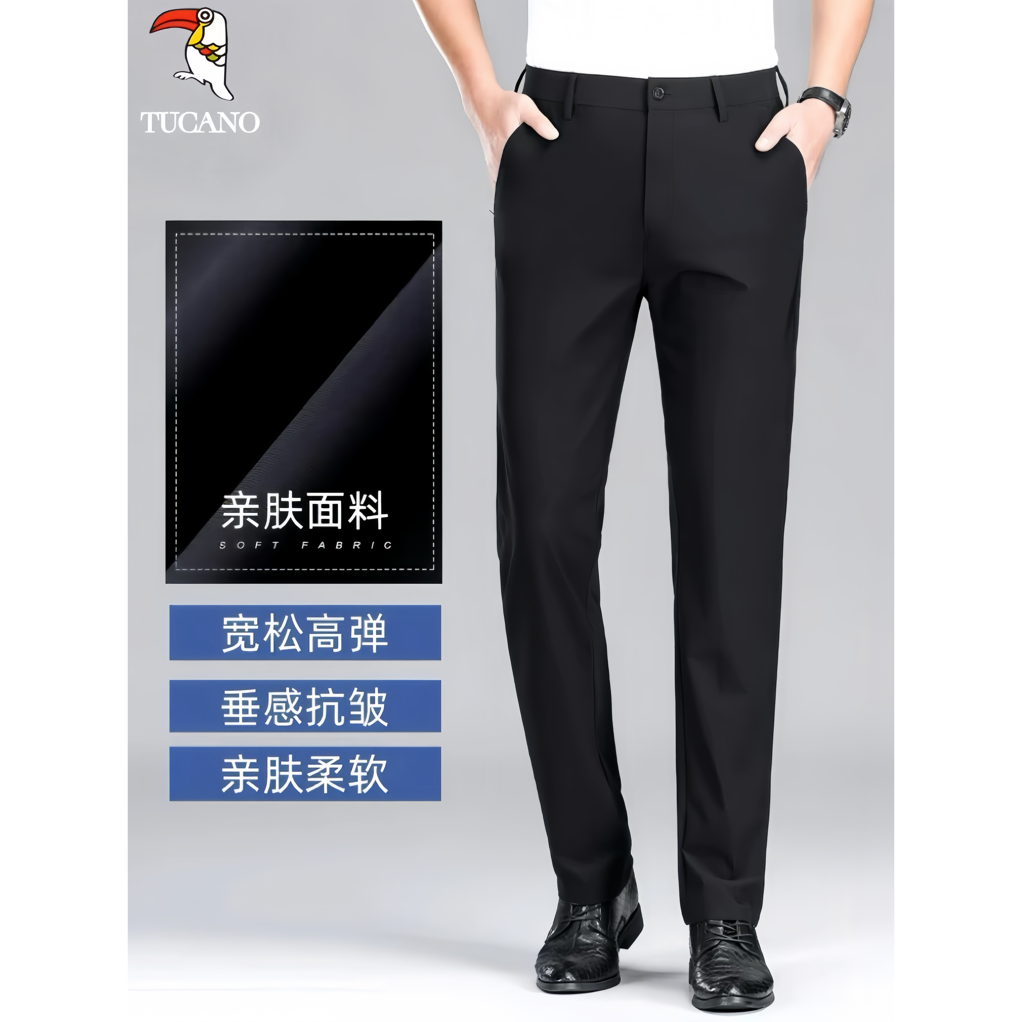 啄木鸟西裤男款春秋款薄款长裤子宽松大码男士商务黑色休闲西装裤