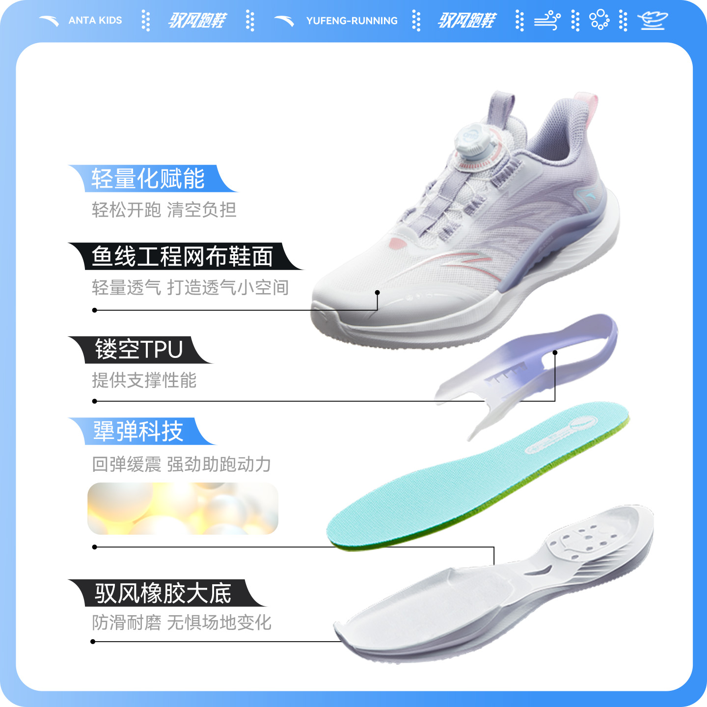 驭风安踏童鞋女童跑鞋2025秋季新款纽扣跑步鞋大童运动鞋透气鞋子