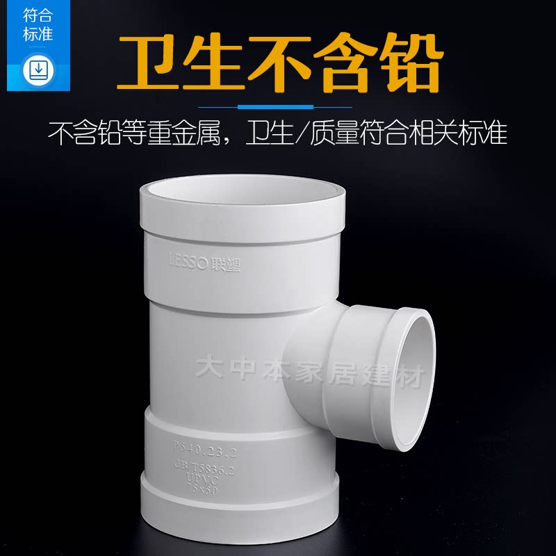 联塑PVC异径三通排水管7511050