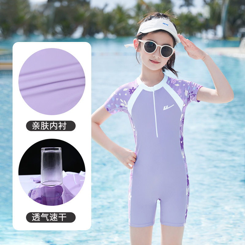回力儿童泳衣女孩连体中大童2025新款夏初中生专业训练女童游泳衣