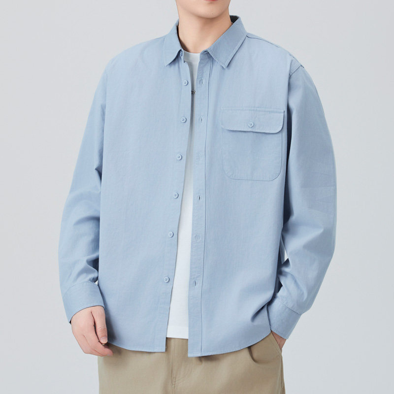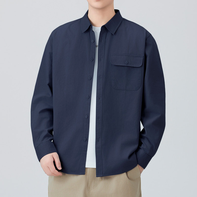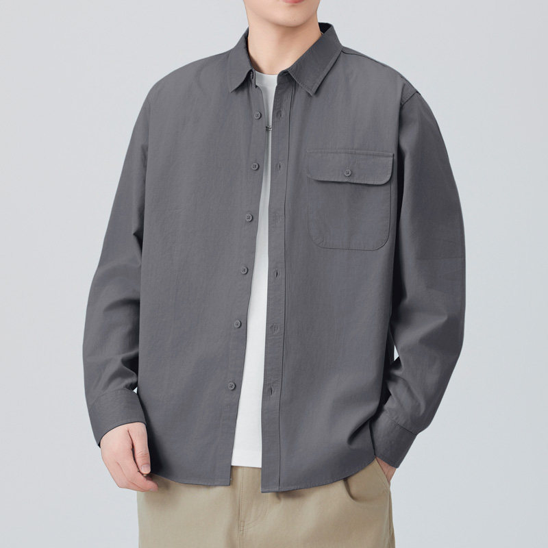 罗蒙春秋款潮牌纯棉男士夹克外套潮流衬衫式翻领休闲百搭长袖衬衣