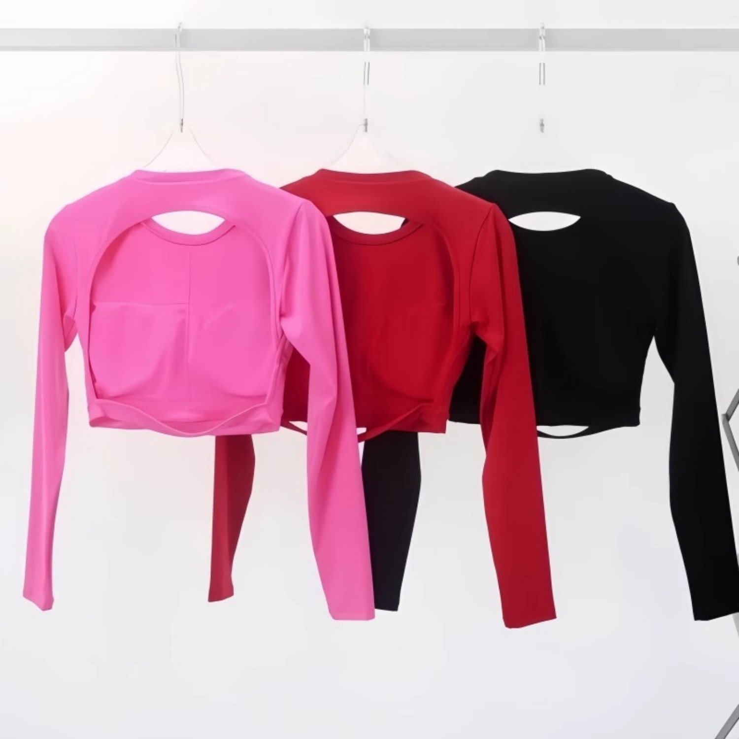 欧美裸感瑜伽服女紧身速干运动健身上衣大露背美背T恤性感带胸垫