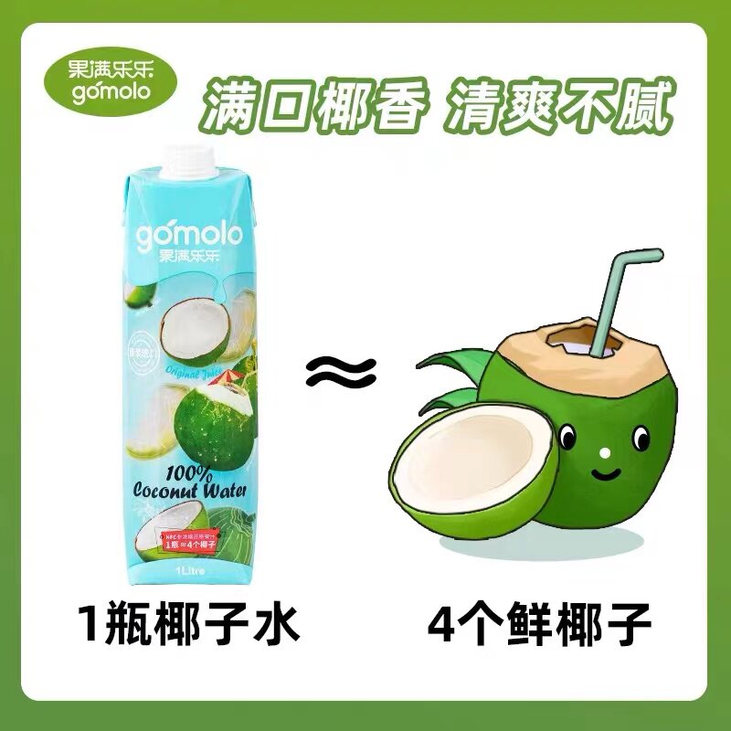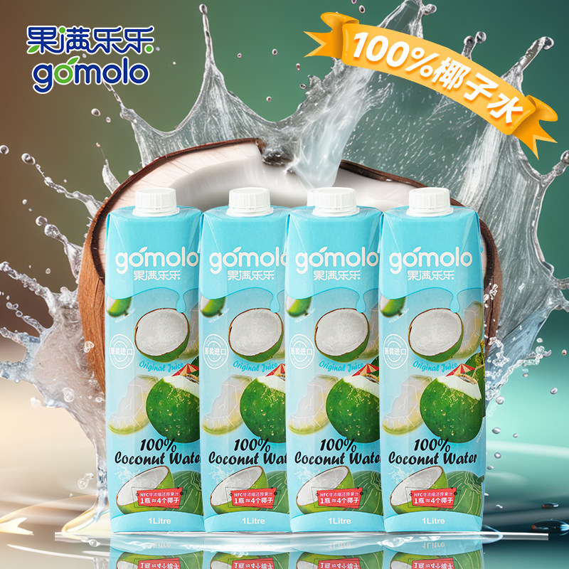 果满乐乐100%椰子水nfc果汁1L*4瓶 泰国进口补水椰青饮料非浓缩