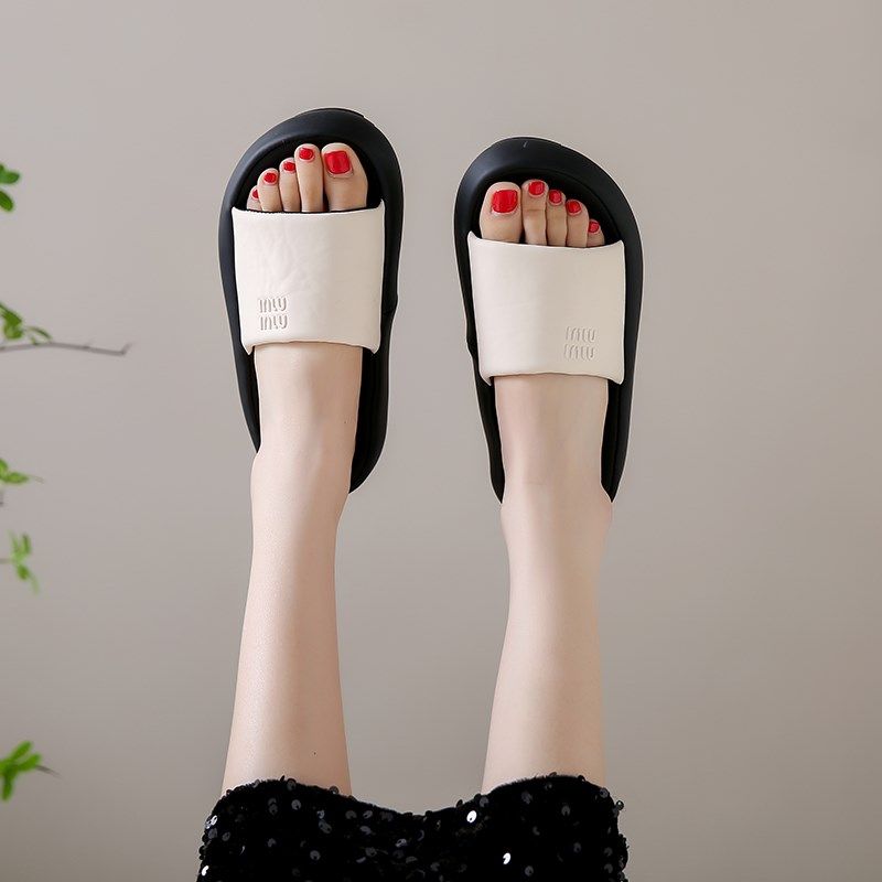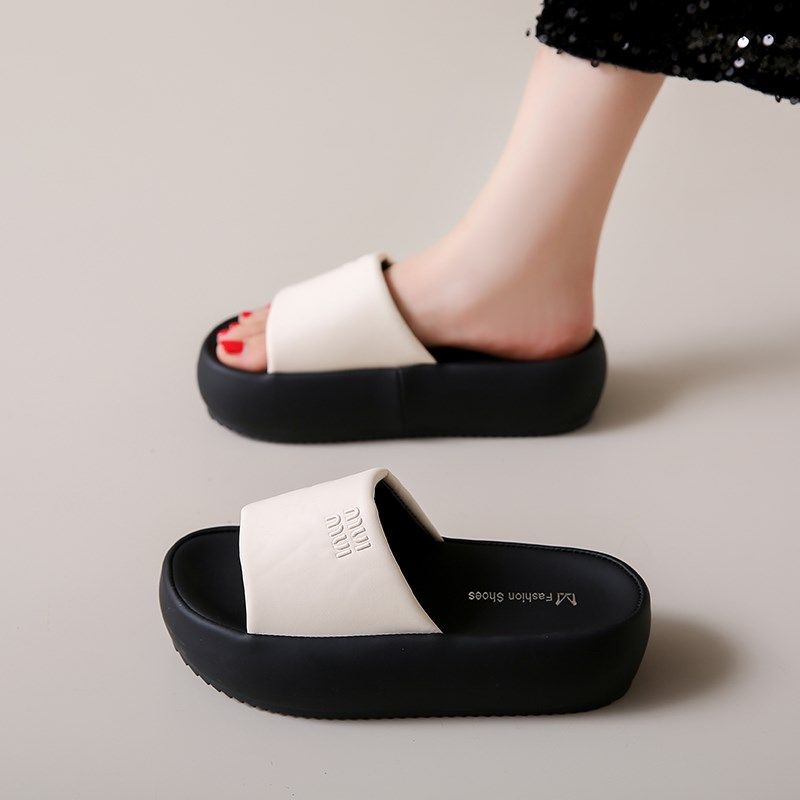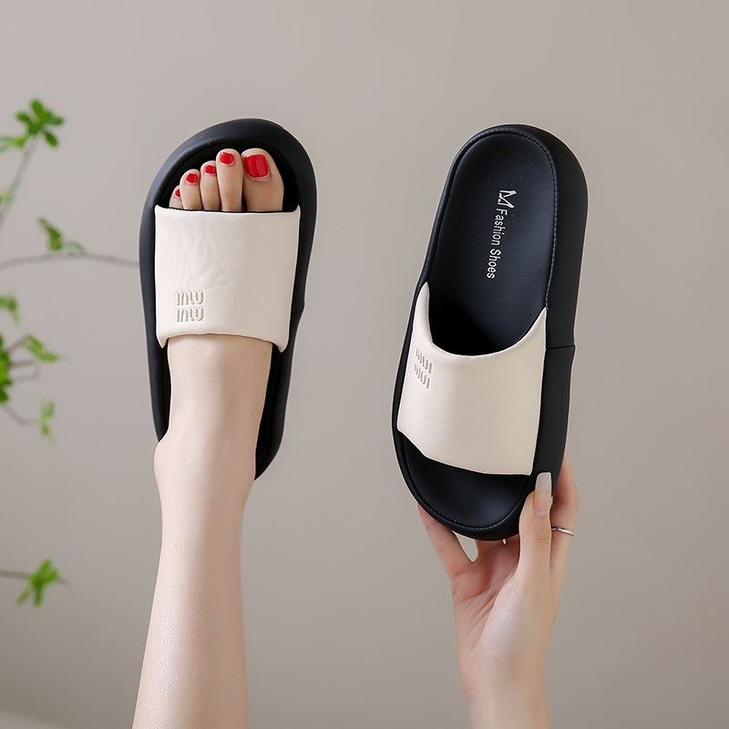 高级感黑色厚底凉拖鞋女外穿夏季2025爆款一字拖防滑软底孕妇凉鞋
