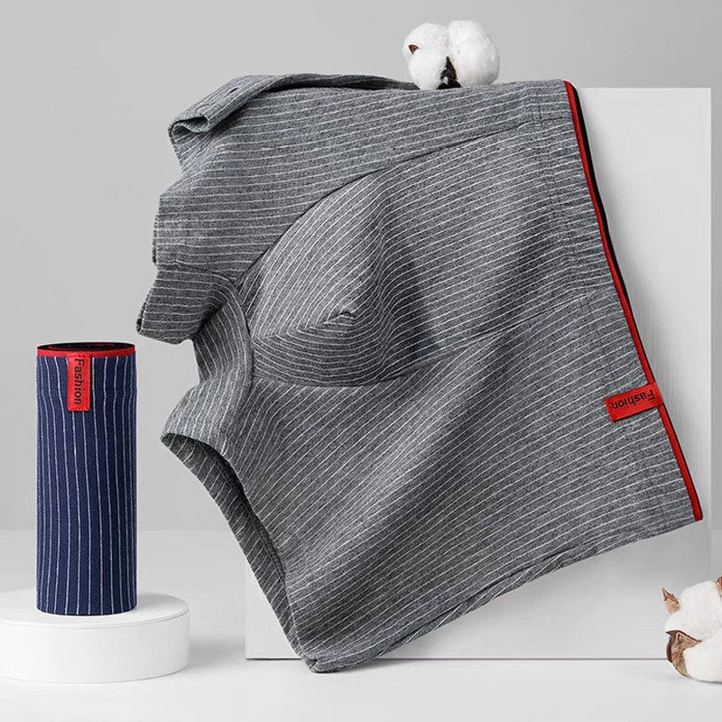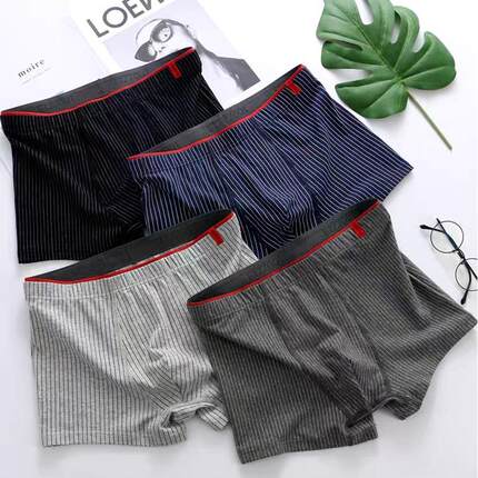 买一送一男士内裤纯棉u条纹时尚男平角裤潮透气个性四角裤男生凸
