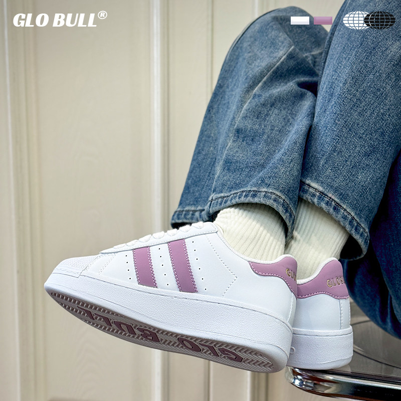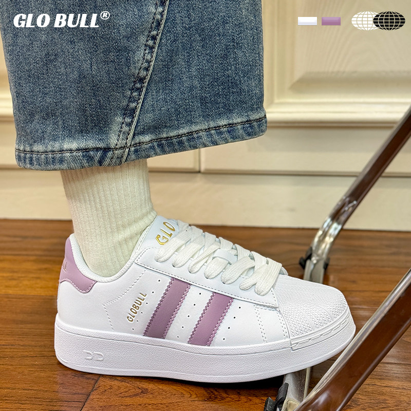 GLO BULL2025新款贝壳鞋女款潮流休闲鞋百搭小白鞋厚底板鞋面包鞋