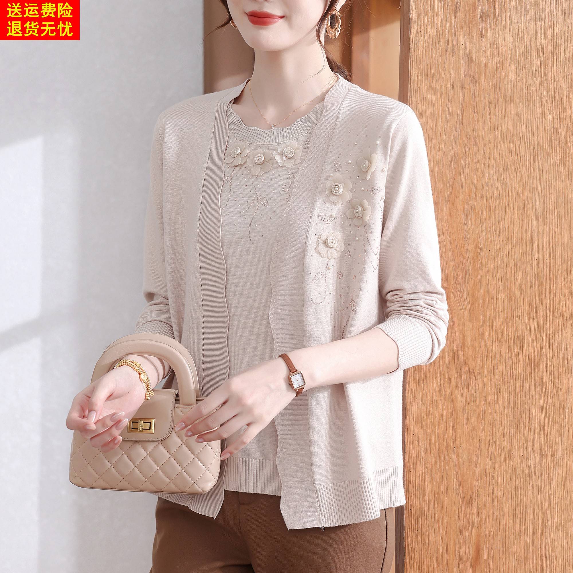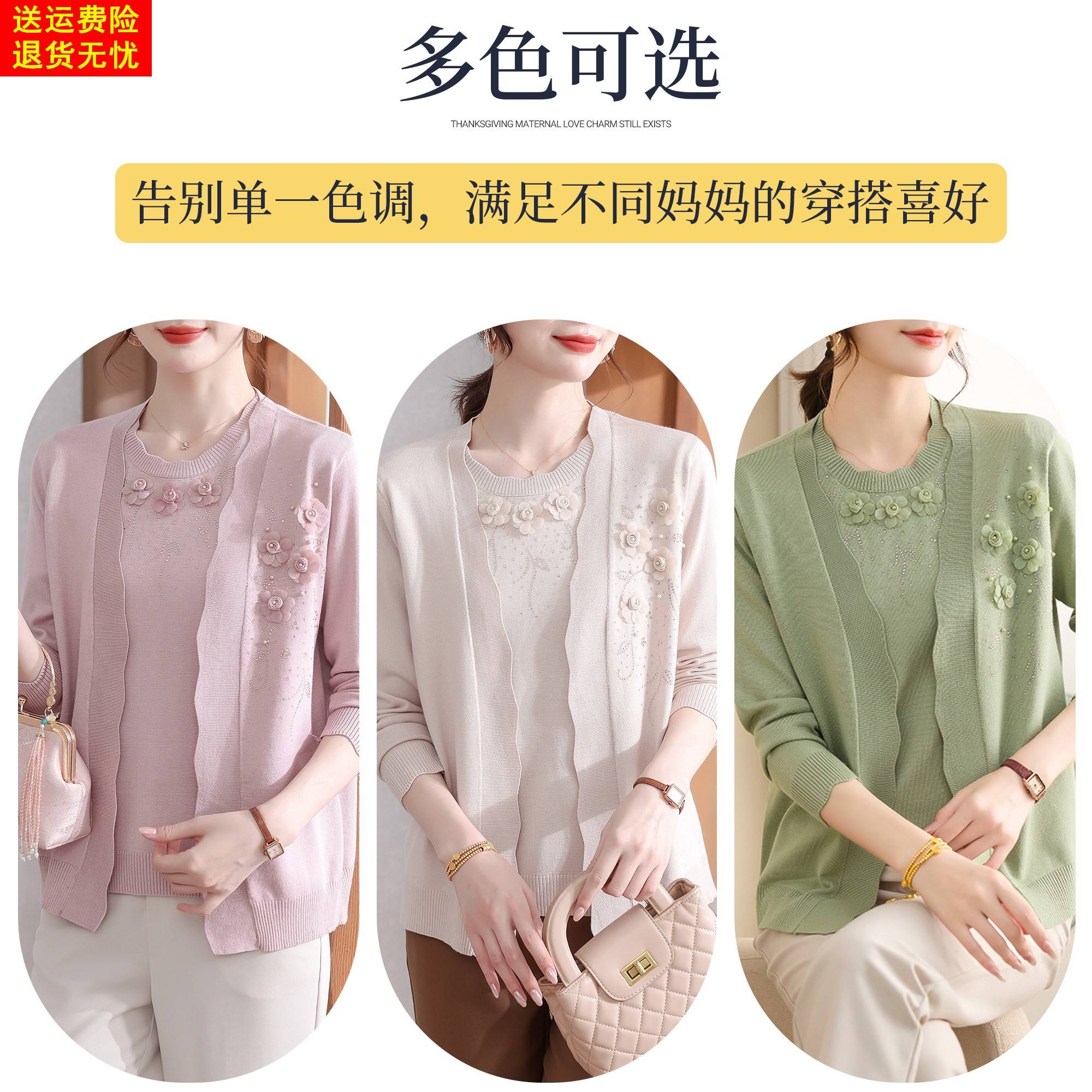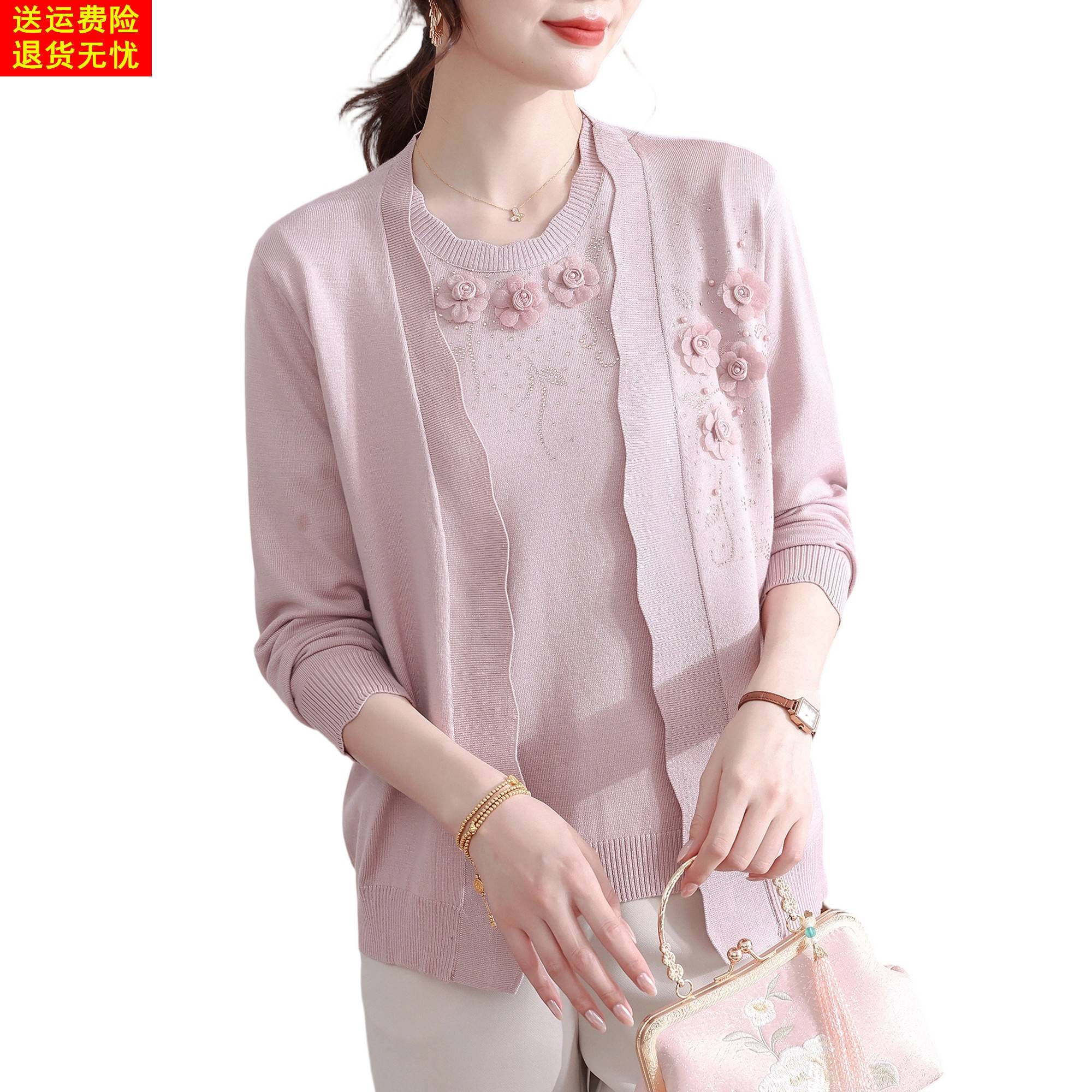 妈妈秋装绣花薄款早秋针织两件套上衣40岁50高级感中老年女装外套