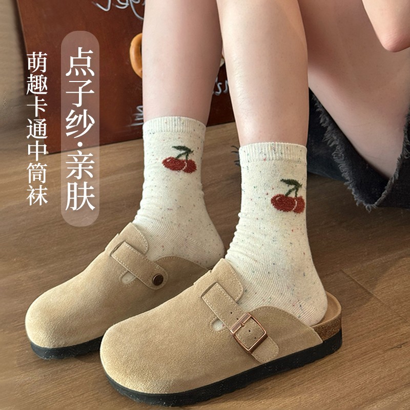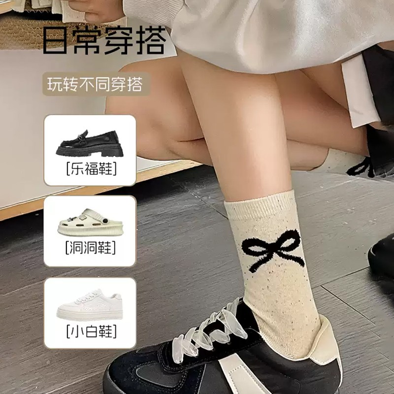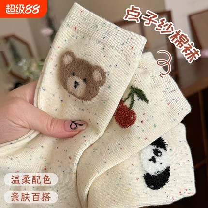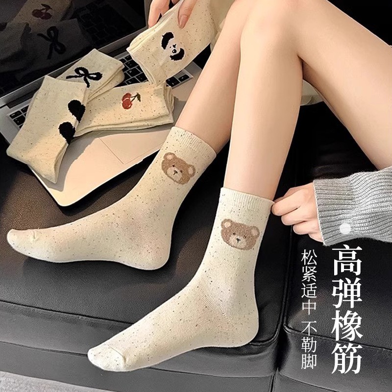 诸暨袜子女款纯棉中筒袜可爱小熊日系甜美学院风ins潮长袜春秋季