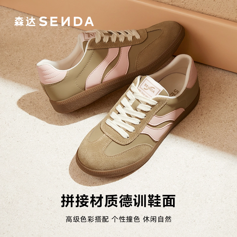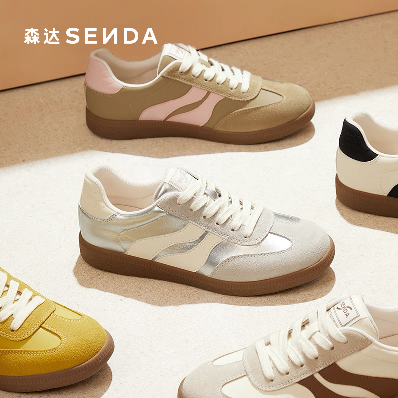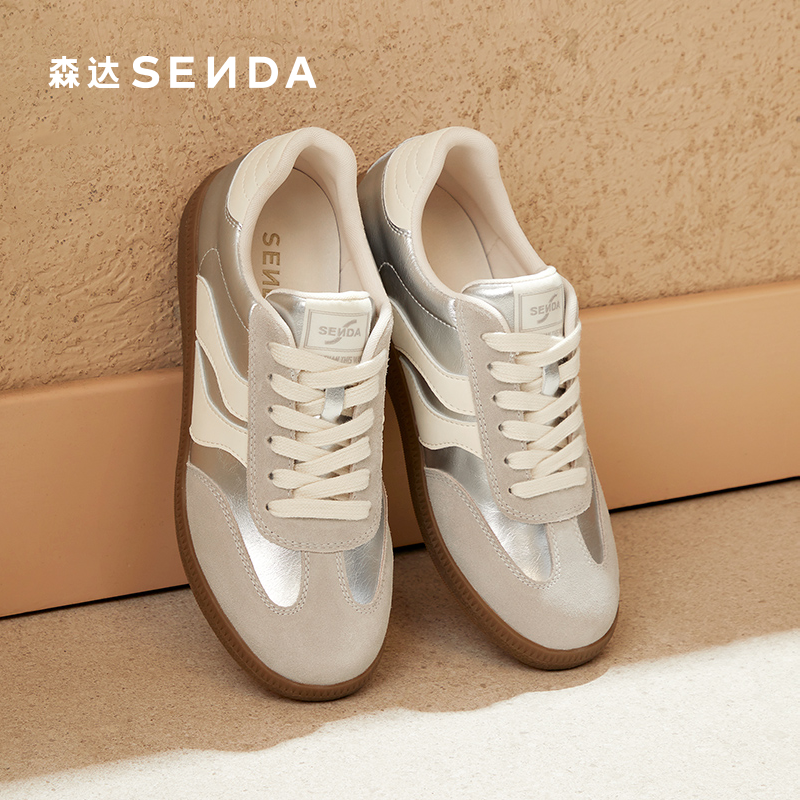 森达银色德训鞋女鞋春秋款软底休闲平底板鞋运动鞋ZCC79CM4
