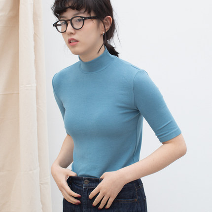 殳十原创设计半高领针织打底衫中袖软糯春秋冬修身纯色毛衣套头女