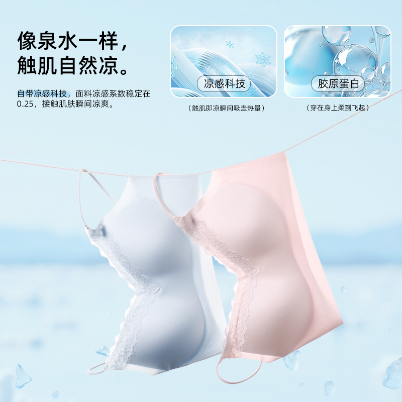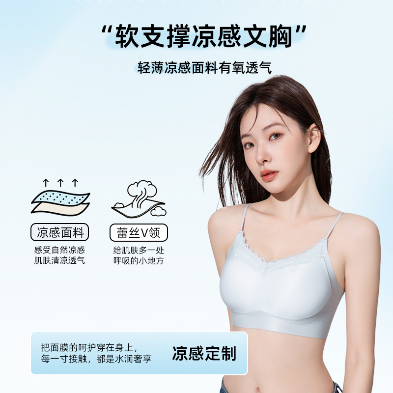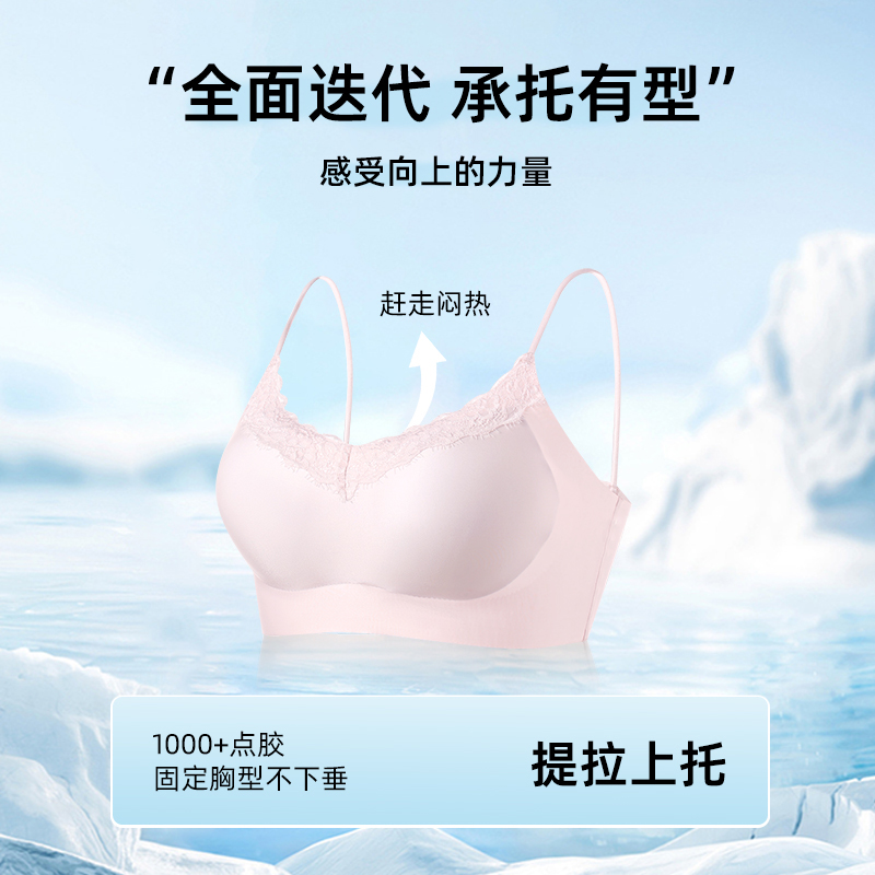 都市丽人凉感内衣女小胸聚拢夏薄款细肩带隐形无痕蕾丝背心文胸罩